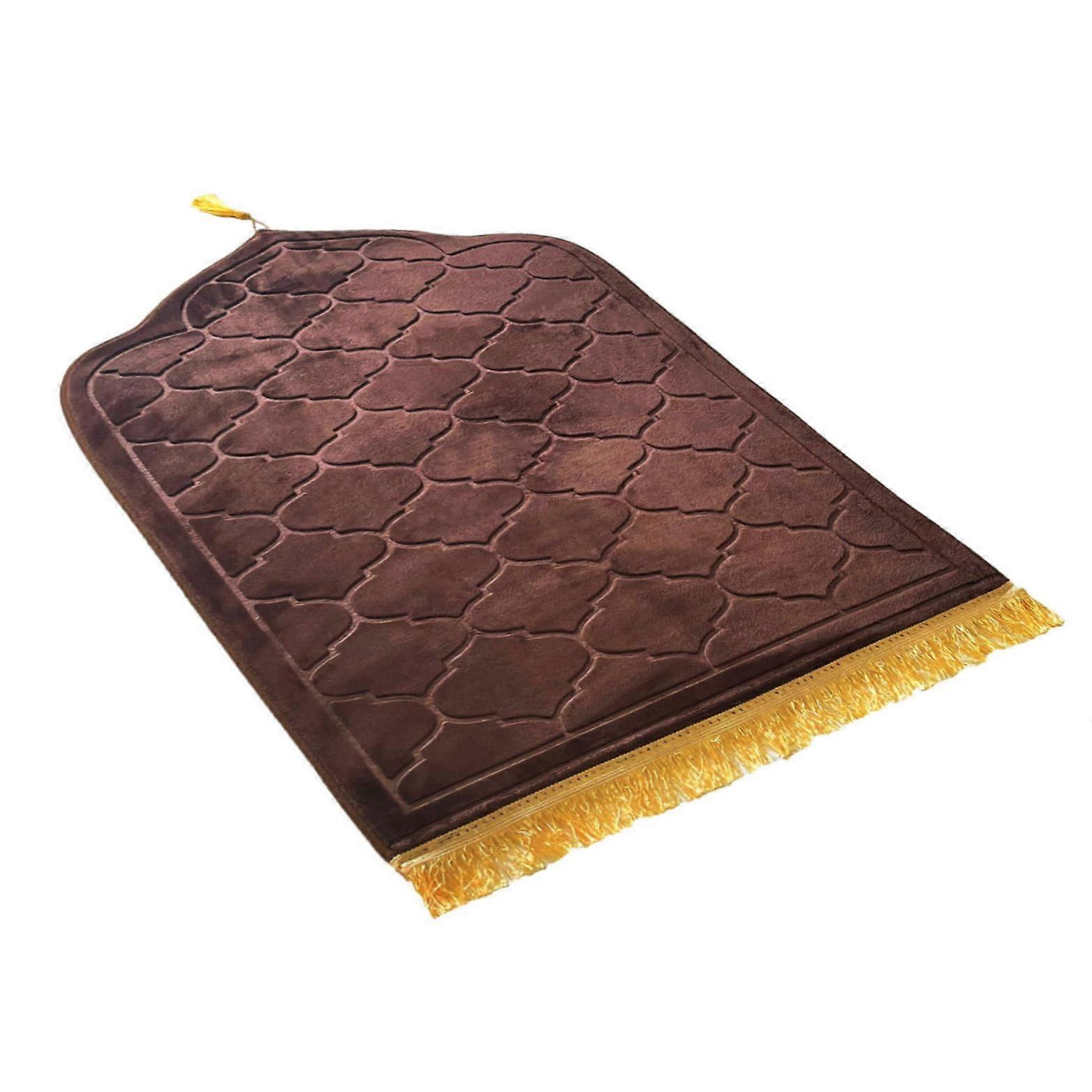 Thick Sponge Islamic Prayer Rug with AntiSlip Base for Travel and Ramadan, Soft Luxury Mat Light Brown