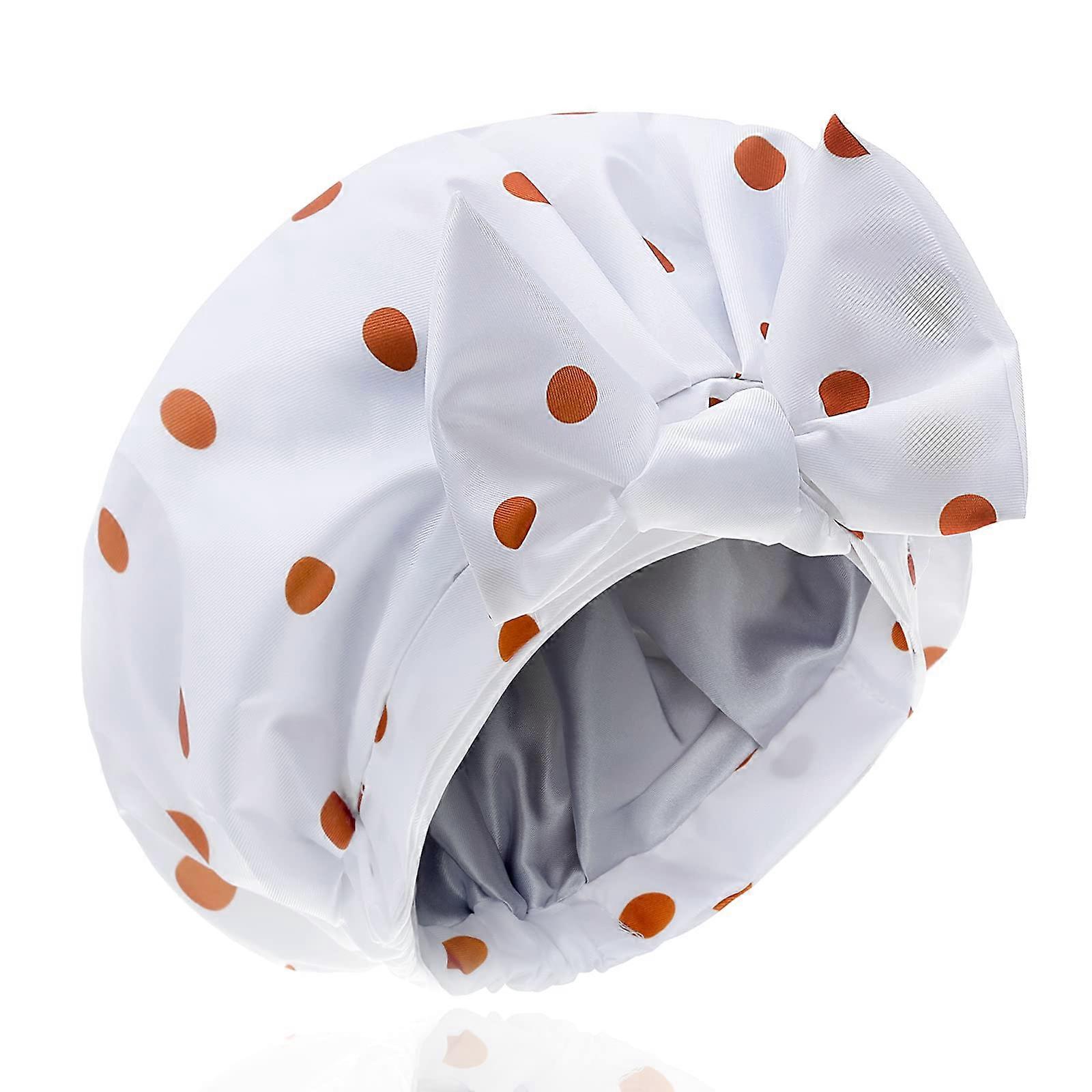 Women's Waterproof Satin Lined Shower Cap with Adjustable Bow for All Hair Lengths, Cute Dot Design