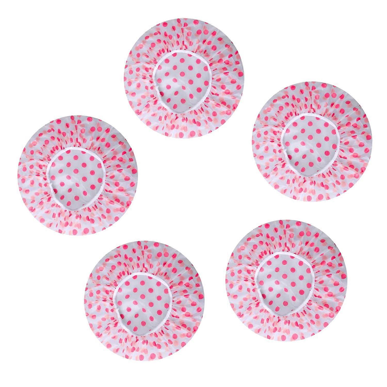 5 Pcs Waterproof Shower Caps for Women, Reusable PVC Bath Hair Caps with Comfortable Elastic Lace Band Red