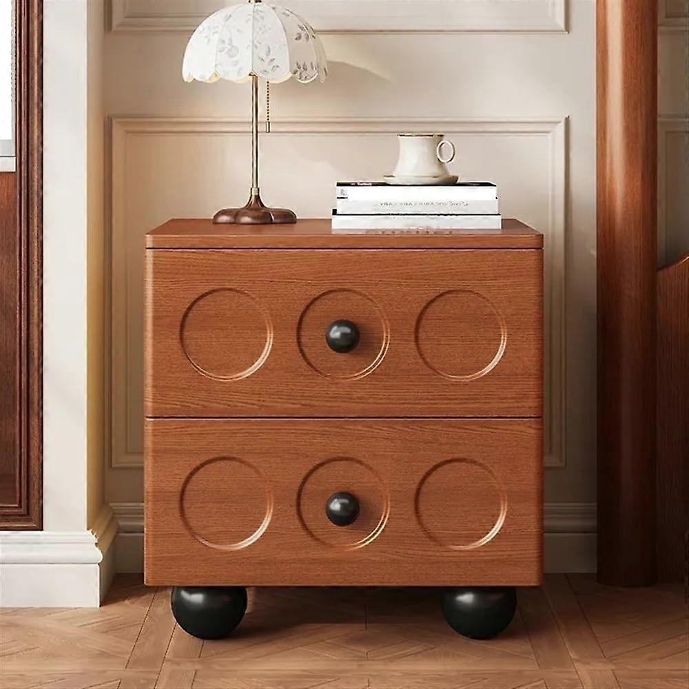 Wooden Bedside Table with Drawers Retro Nightstand for Bedroom Storage and Living Room Use Brown
