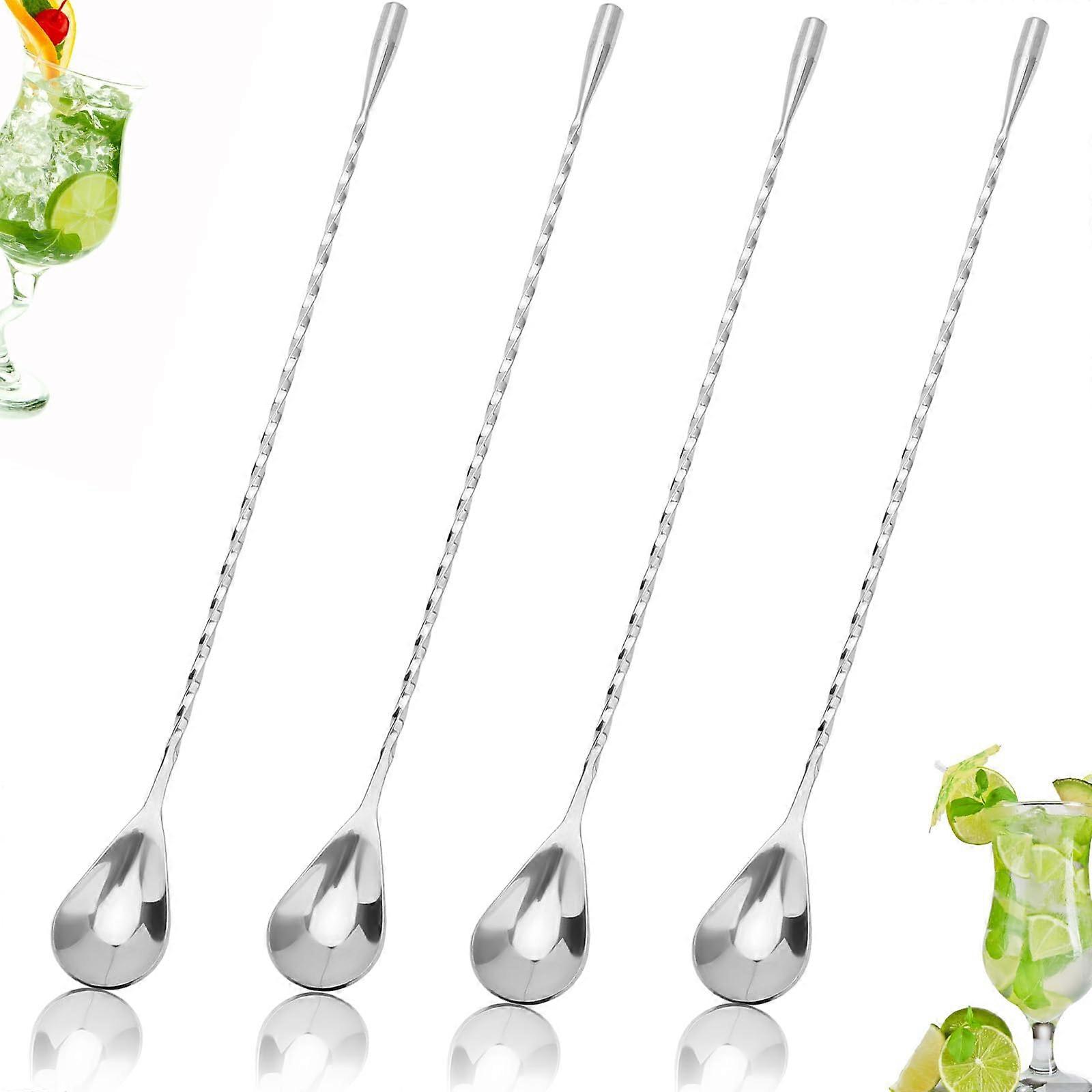 4Piece 12 Inch Stainless Steel Bar Spoon Set with Long Spiral Handle for Cocktail Mixing and Drinks