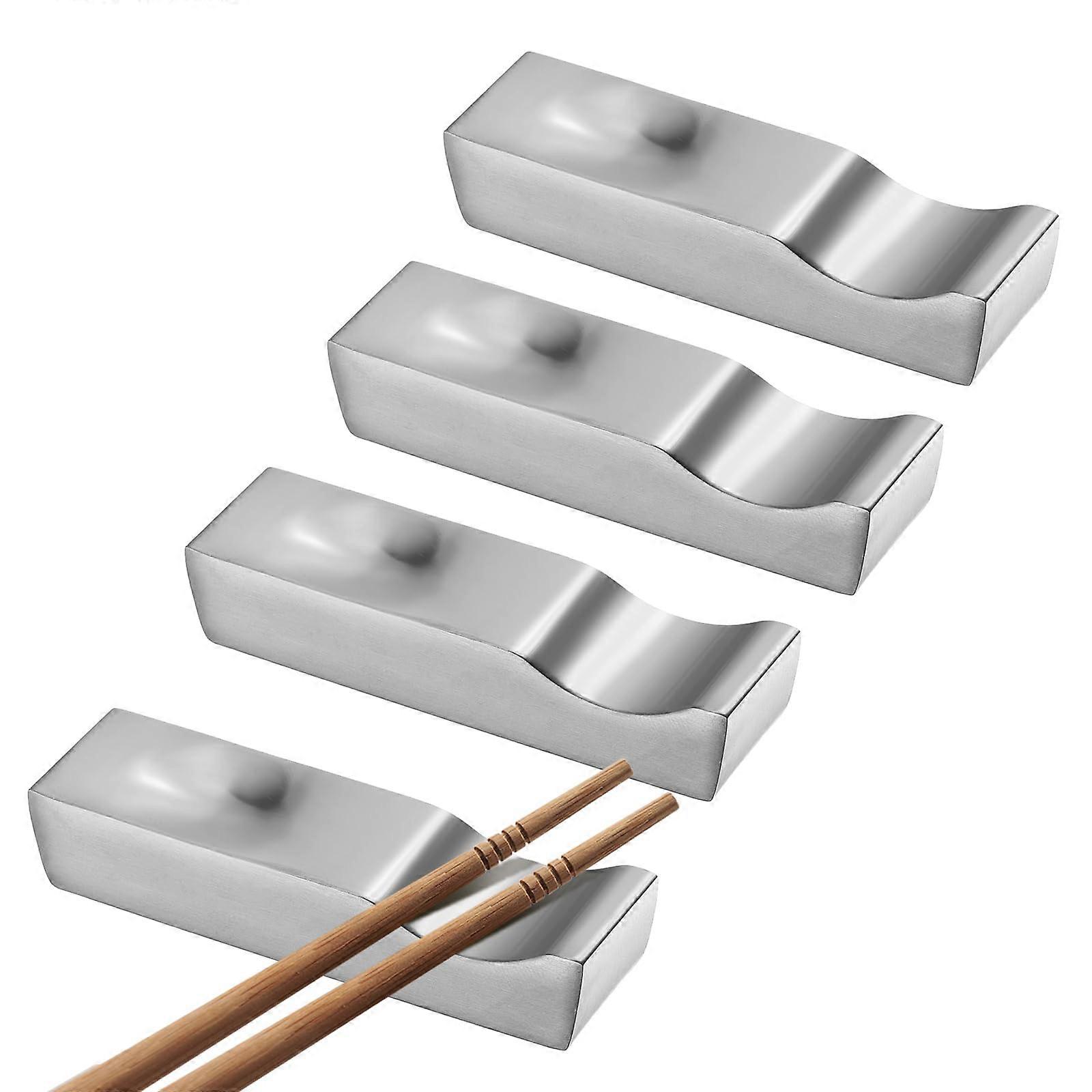 4pcs 304 Stainless Steel Chopstick Rest Set, RustResistant Utensil Holder for Secure Cutlery Placement, Silver
