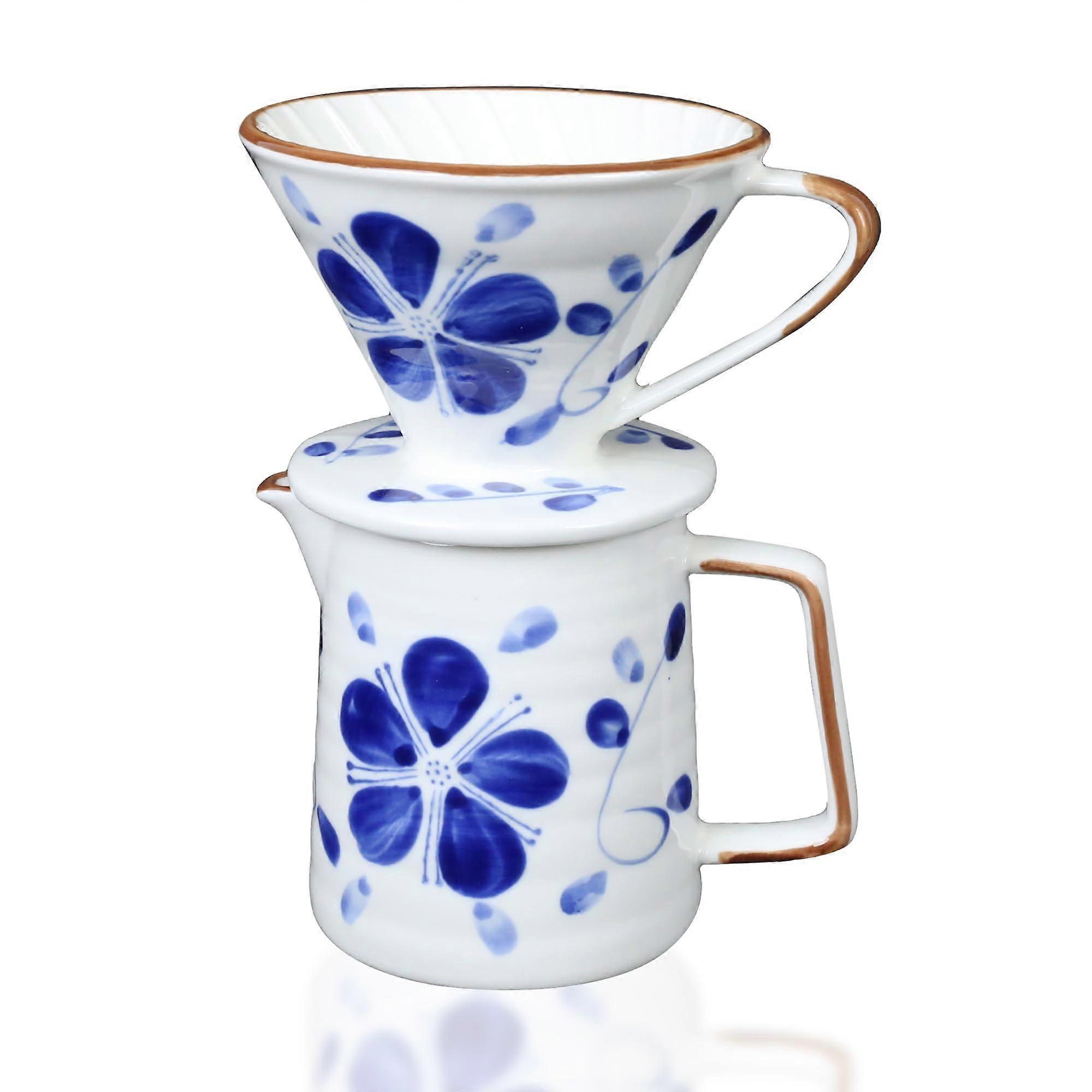 Pour Over Coffee Dripper Ceramic 14 Cup Brewer Blue White Porcelain Easy Clean Durable