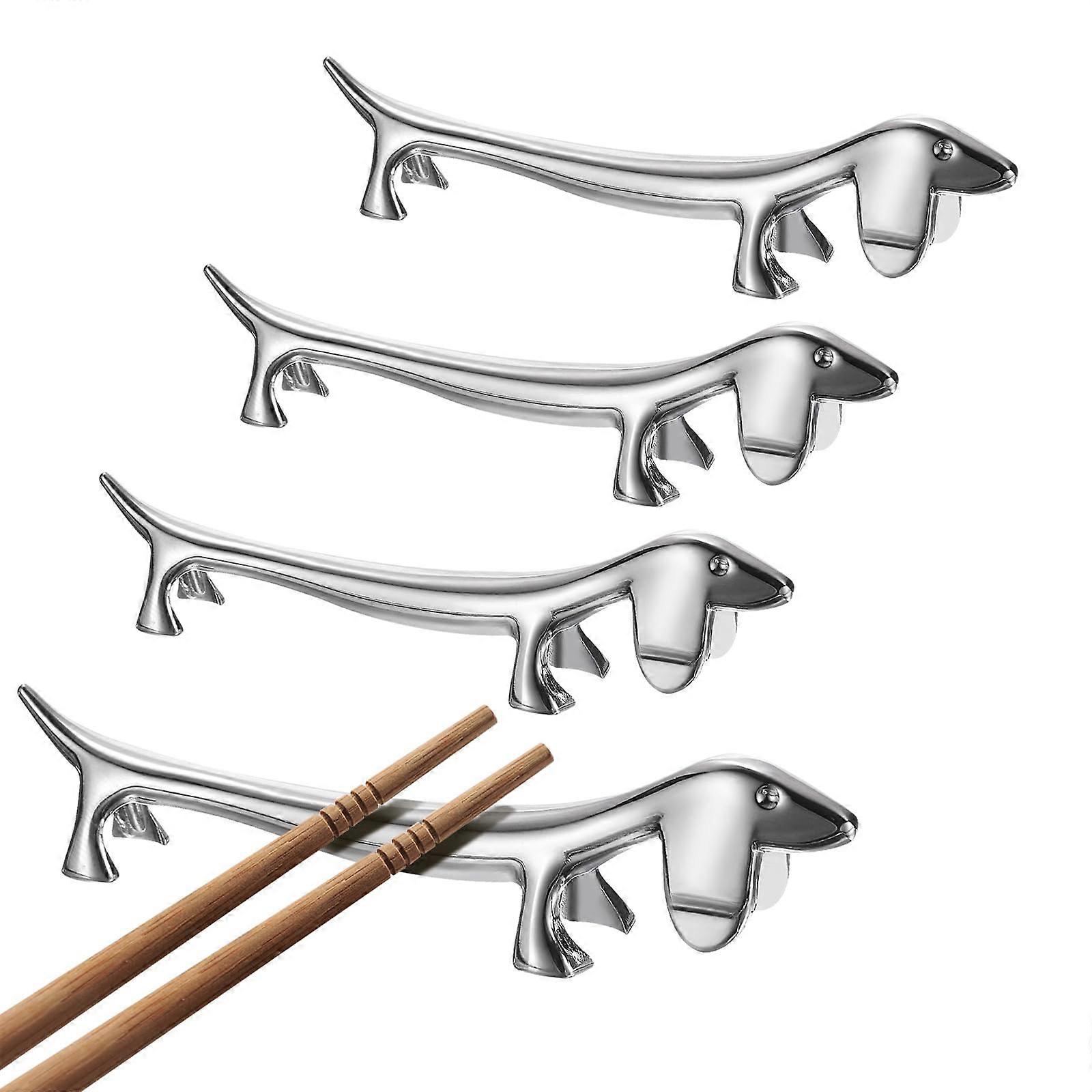 4pcs Zinc Alloy Dog Shape Chopstick Rest Utensil Holder Silver Stand for Kitchen Dining Tabletop