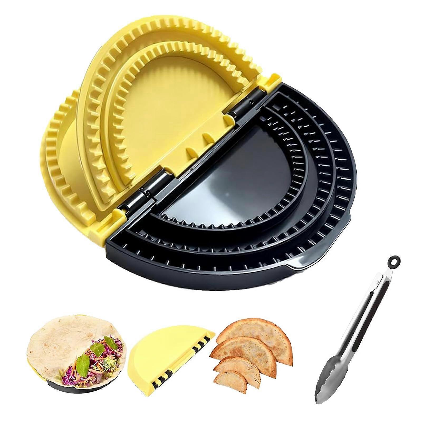 Tortilla Sealer – Smart 3in1 Kitchen Tool for Wraps Create delicious, sealed wraps in minutes with the Tortilla Sealer – your goto kitchen tool for quick meals, appetizers, or snacks. Designed for ease, speed, and versatility, it delivers a tight seal and crispy finish every time. Key Benefits and Features: Versatile wrap maker for endless recipes: pizzastyle calzone wraps, hearty breakfast wraps with egg and bacon, spicy Mexicanstyle wraps with pulled chicken, or sweet dessert wraps like apple and cinnamon. 3in1 size compatibility: Works with 24 cm, 20 cm, and 16 cm tortillas, eliminating the need for multiple tools. Compact and lightweight: Durable design fits easily into any kitchen drawer and is simple to store. Reliable sealing function: Prevents fillings from spilling and keeps wraps neatly closed during cooking. Quick cooking guide: Air fry at 190°C (375°F) for 6 minutes for a golden, crisp finish. Healthy materials: Made from 100% BPA, nontoxic plastic for safe food preparation. How to Use: 1. Place your tortilla or wrap on the bottom plate. 2. Add your chosen filling evenly. 3. Lightly glaze the edges with water to ensure a secure seal. 4. Fold the tortilla in half, place the plate over it, and press firmly to lock the edges. 5. Transfer to your oven or air fryer and cook as desired for a crispy, flavorful result. Included Accessories: cooking tongs for safe and easy handling of hot wraps. Easy cleaning by hand or in the rack of your dishwasher. Applications: Lunchtime solution: Prepare warm, sealed wraps at home or pack them togo. Party appetizers: Create bitesized, mess snacks for guests. Dessert option: Seal and bake sweet fillings for a quick . The Tortilla Sealer offers a clean, simple, and efficient way to prepare sealed wraps, helping you create meals that hold together, cook evenly, and taste . for busy kitchens where speed, convenience, and consistent results matter.
