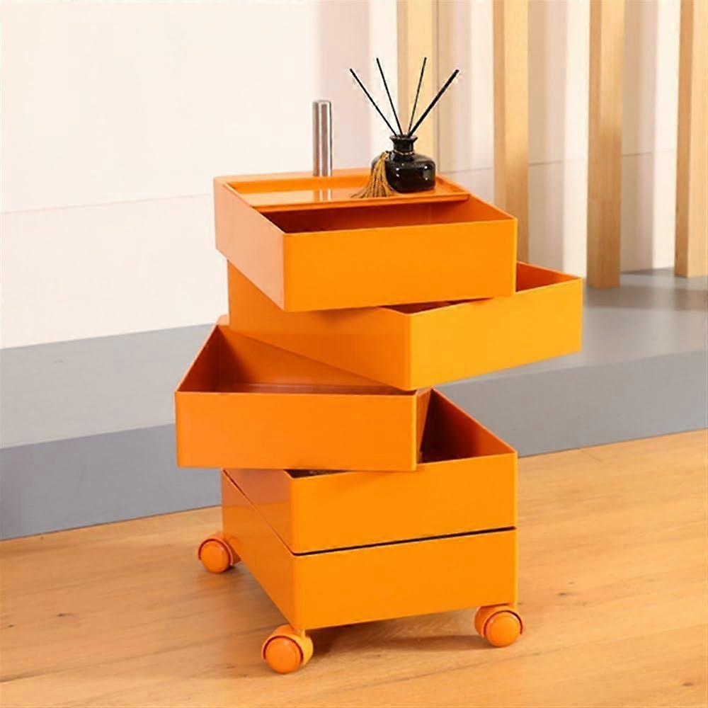 Bedside Table Storage Organizer with Drawers, MultiLayer Movable Cart for Living Room, Orange