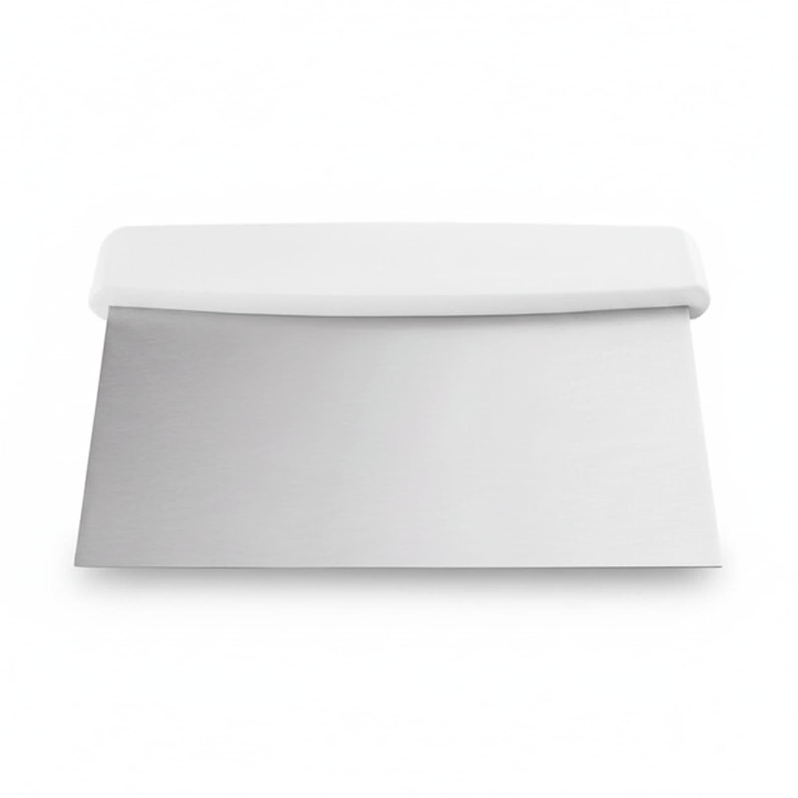 Stainless Steel Dough Scraper with White Plastic Handle for Bread Pizza Pastry Cutting 5 7/8'x4 1/4'