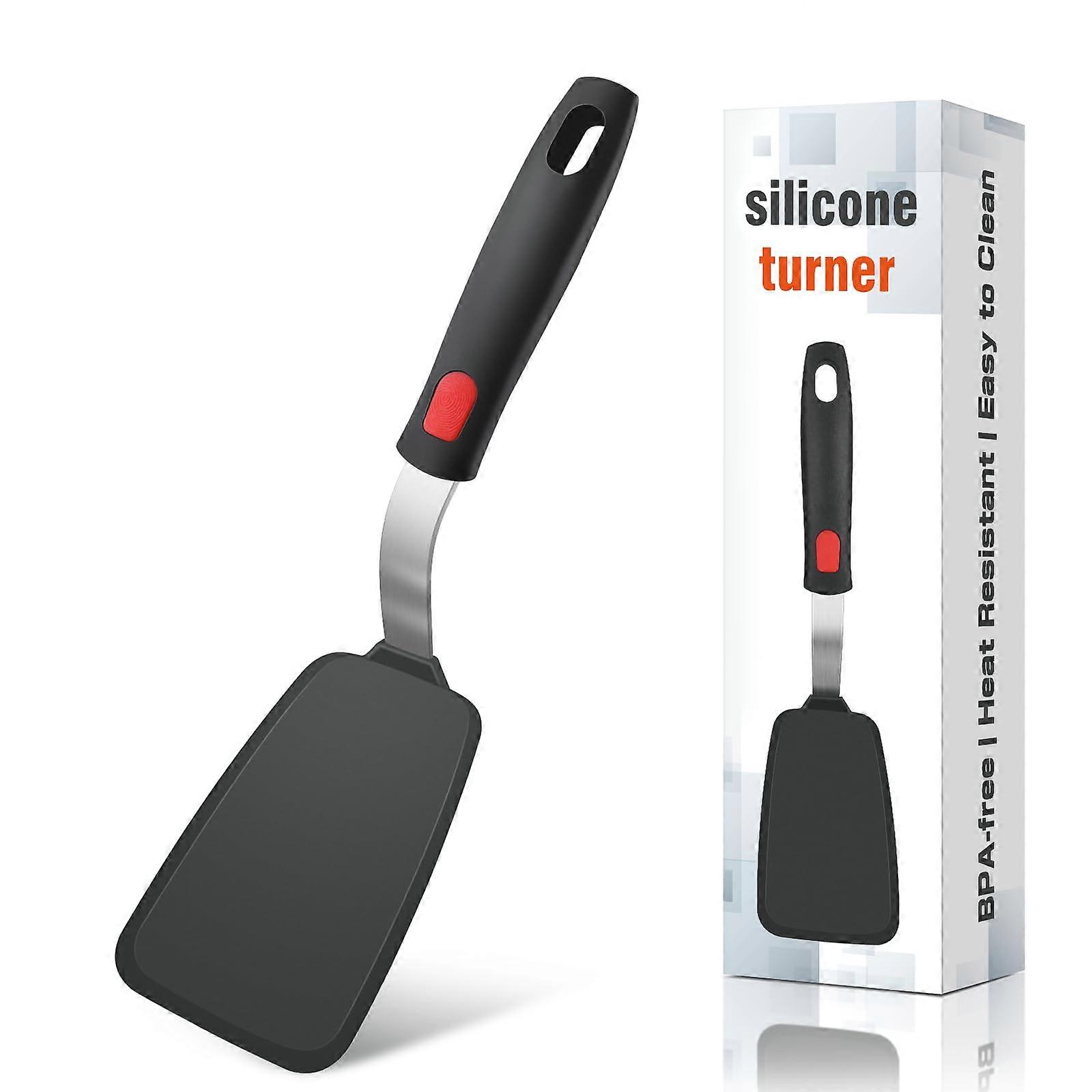 Silicone Spatula Turner Heat Resistant 446°F BPA Nonstick Safe Ergonomic Grip Black 11.8in