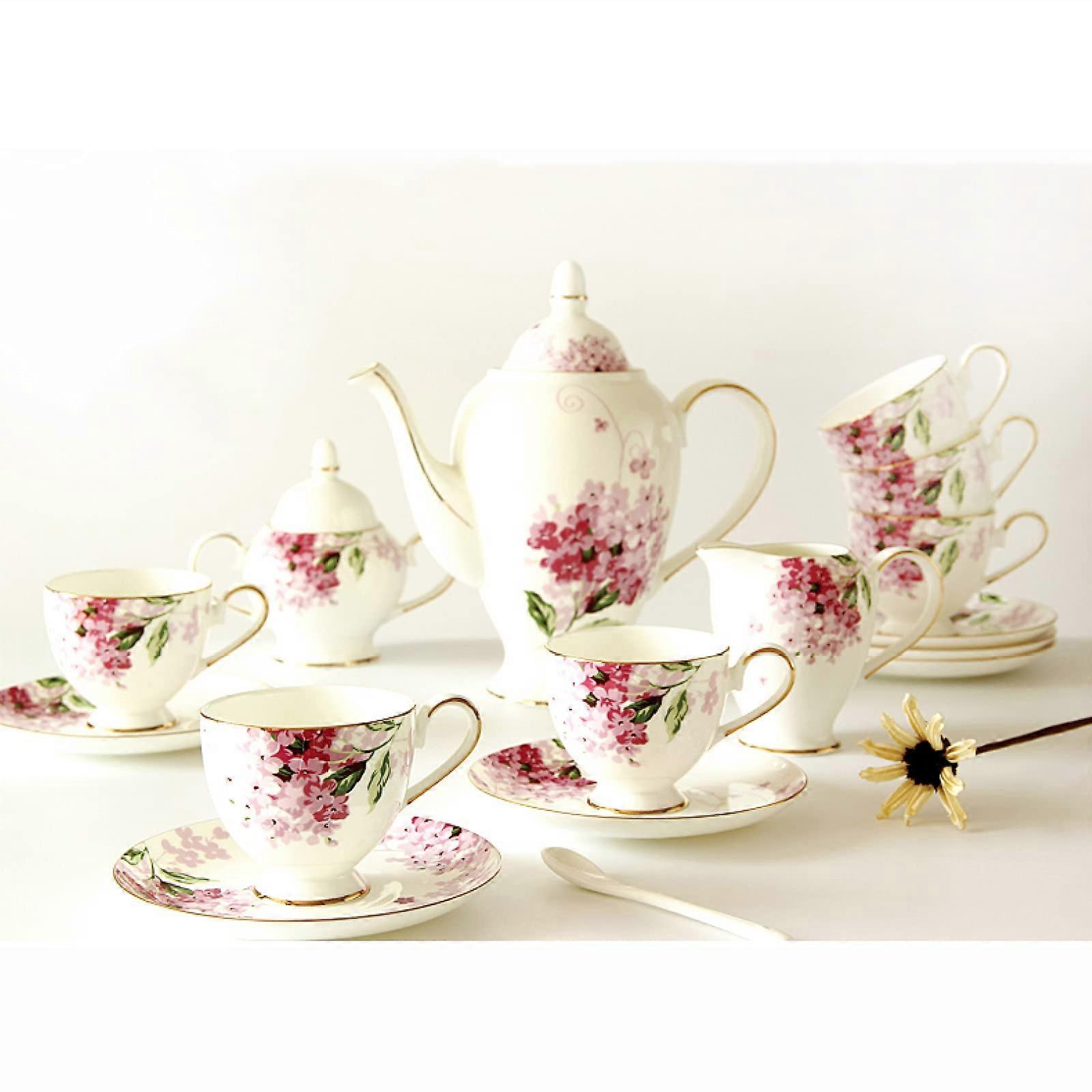Vintage Bone China Tea Set 15 Piece Elegant Afternoon Tea Service for 6 with Cups and Saucers