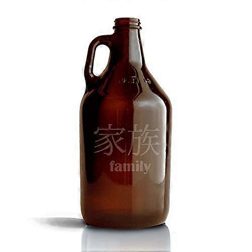 64oz Glass Beer Growler with Japanese Family Character Etching, Durable Handmade Design, Made in USA