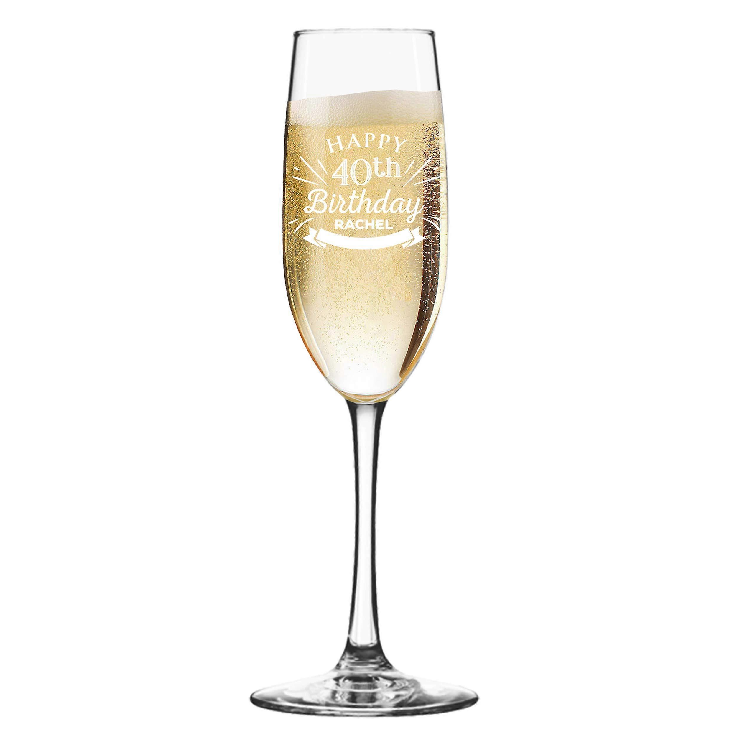 Glassware with Custom Name Engraving for Birthday Champagne Flute, Wine, Beer and Shot Glass