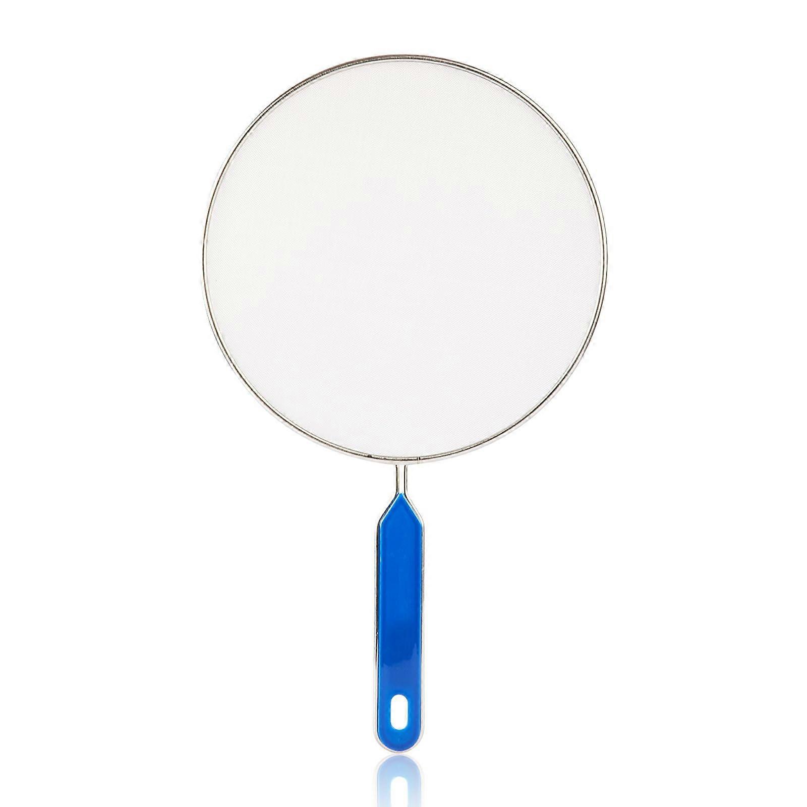 Splatter Screen for Frying Pan 8 Inch Stainless Steel Grease Guard with Long Handle Blue