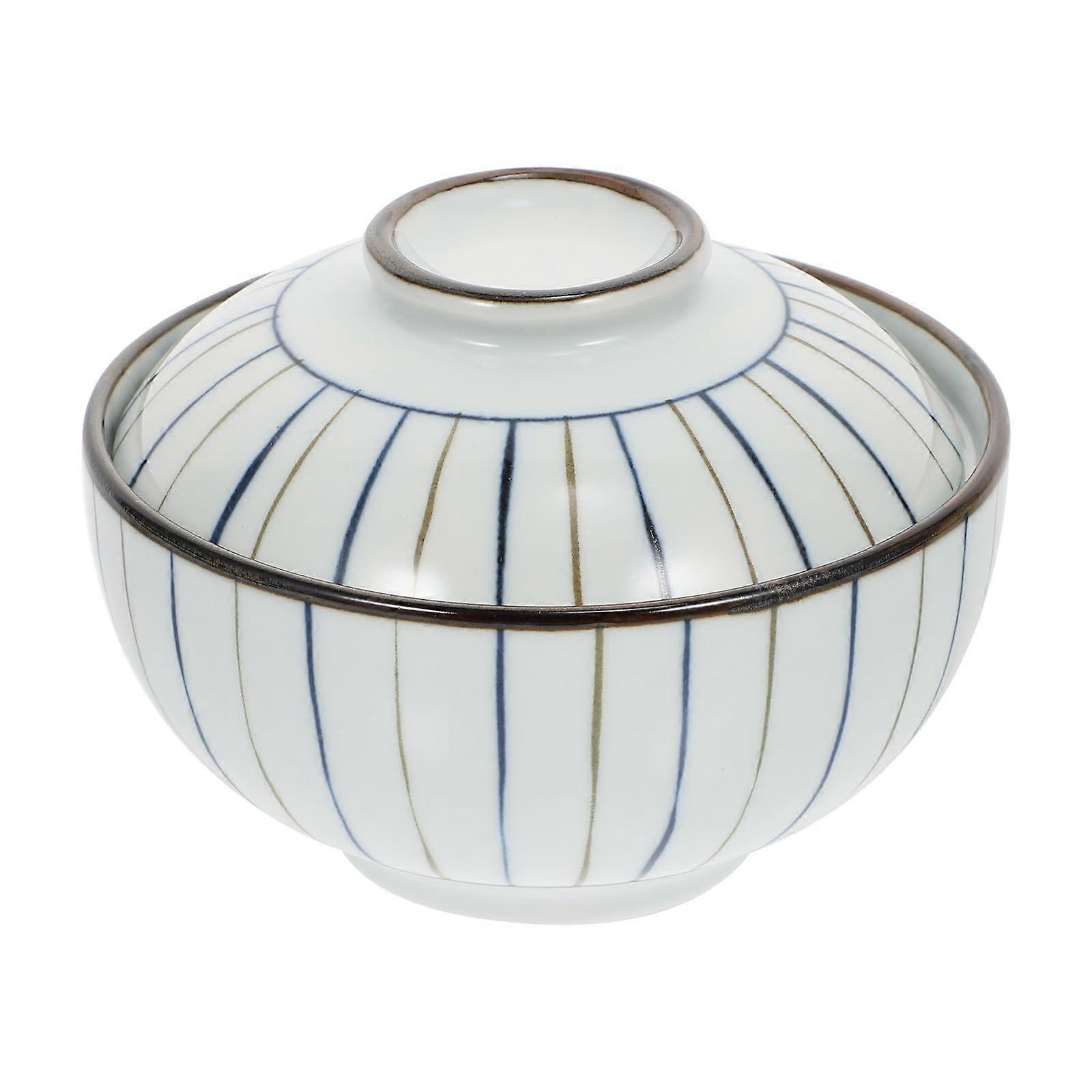 Elegant Japanese Ceramic Soup Bowl with Lid, 4.75 Inch Retro Rice and Snack Serving Tableware