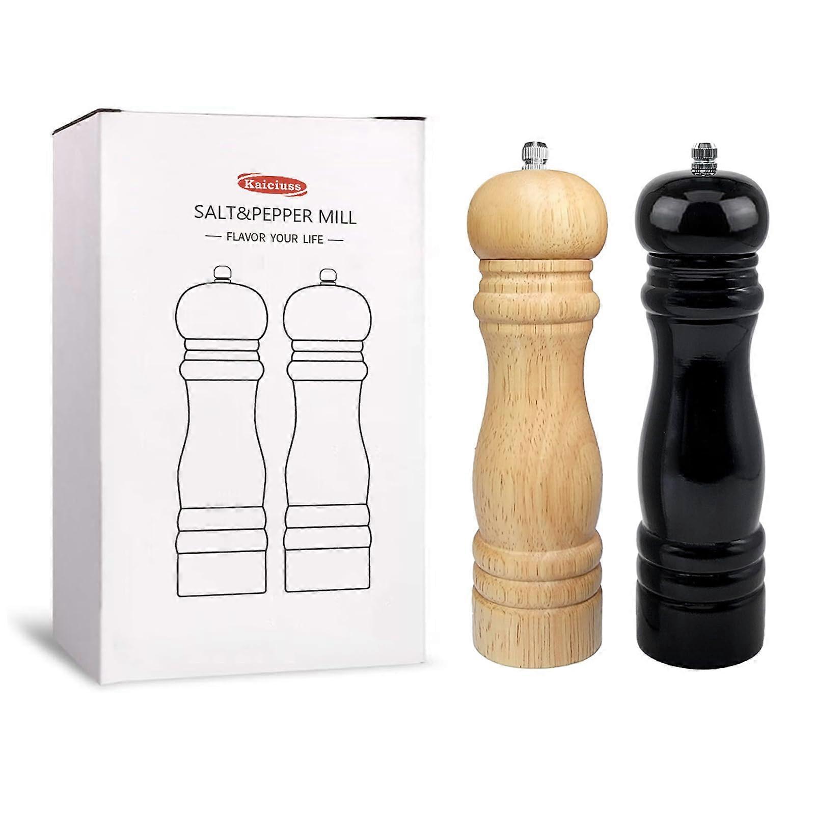 Wooden Salt and Pepper Grinder Set with Adjustable Ceramic Pepper Mill, 8 Inch Rubberwood, 2 Pack