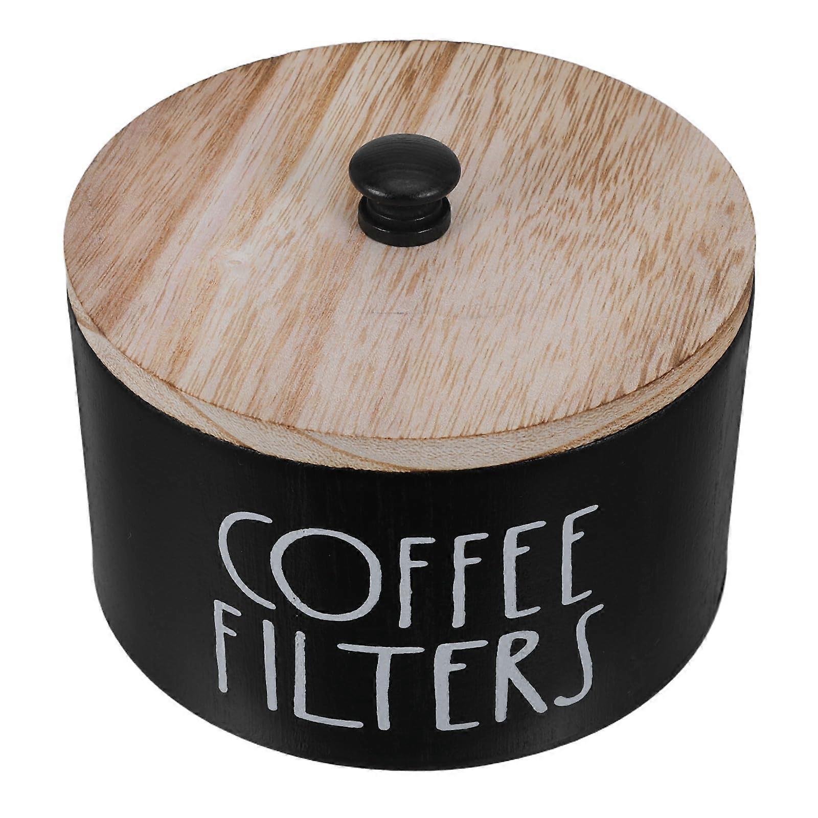 Coffee Filter Holder with Lid, Round Wooden Farmhouse Storage Container, Rustic Kitchen Organizer 5.9 Inch