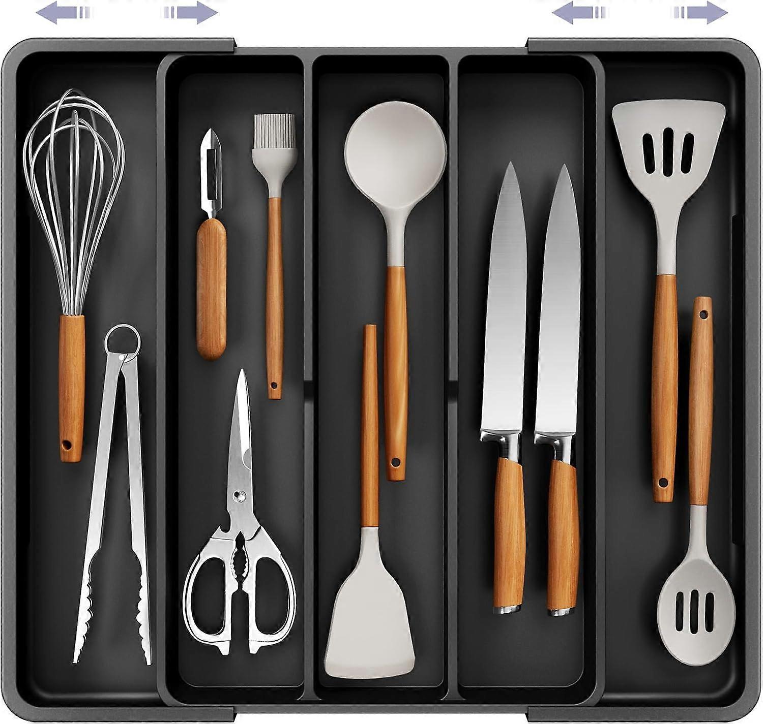 Expandable Cutlery Drawer Organiser – Large Cutlery Tray with 5 Compartments, Ideal for Kitchen Storage & Organisation, Home & Kitchen Essentials