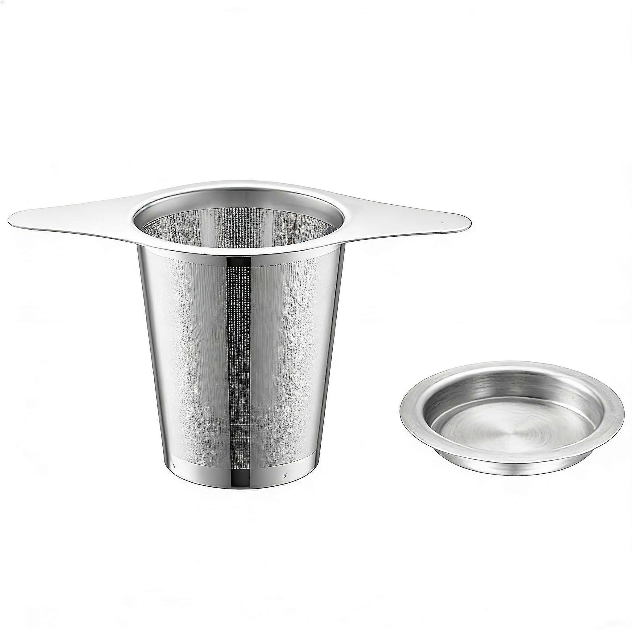 Tea Infuser 304 Stainless Steel Loose Leaf Strainer with Lid and Double Handles Fine Mesh Filter