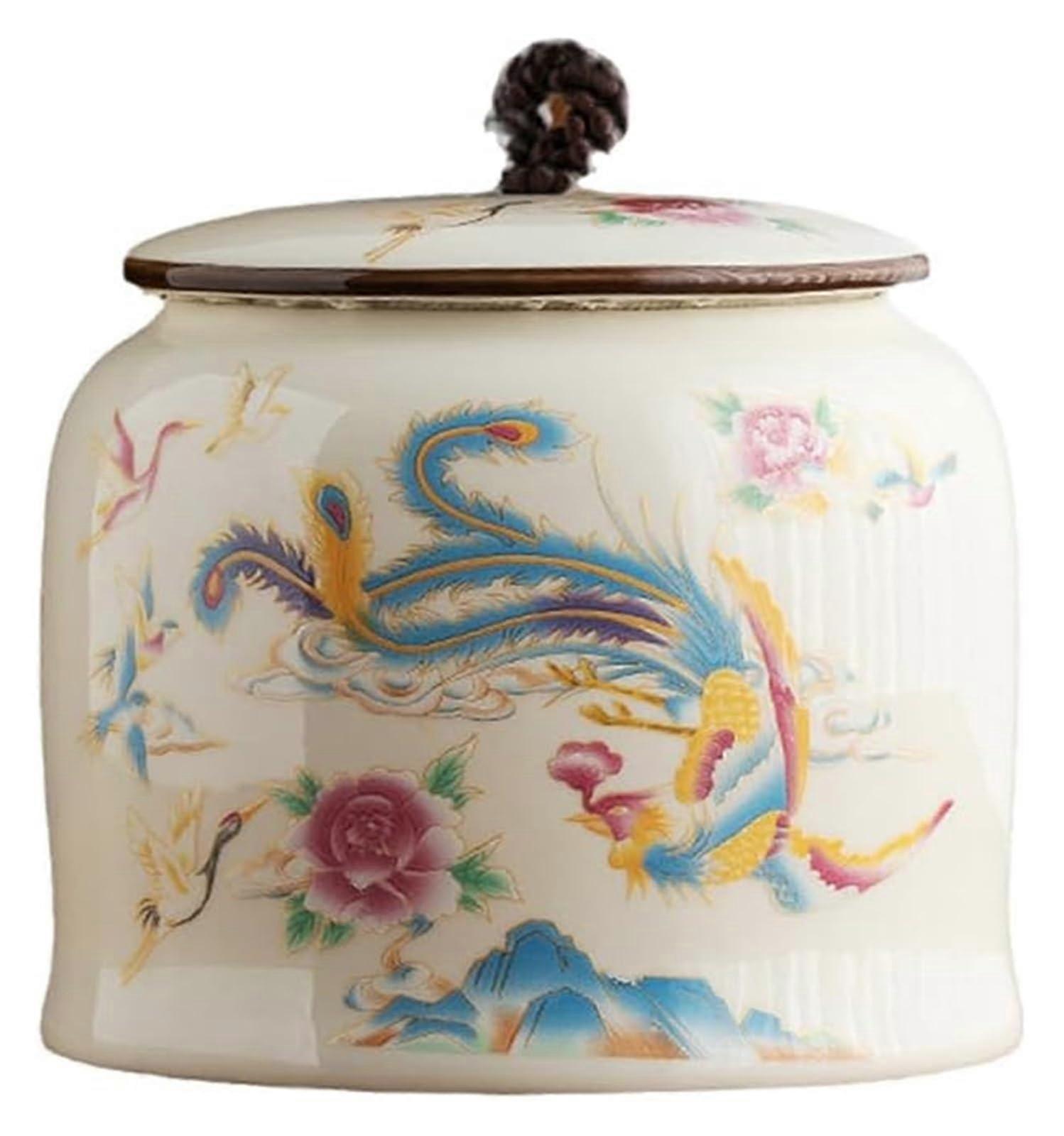 Ceramic Tea Canister with Lid, Vintage Blue and White Porcelain Storage Jar for Kitchen and Decor