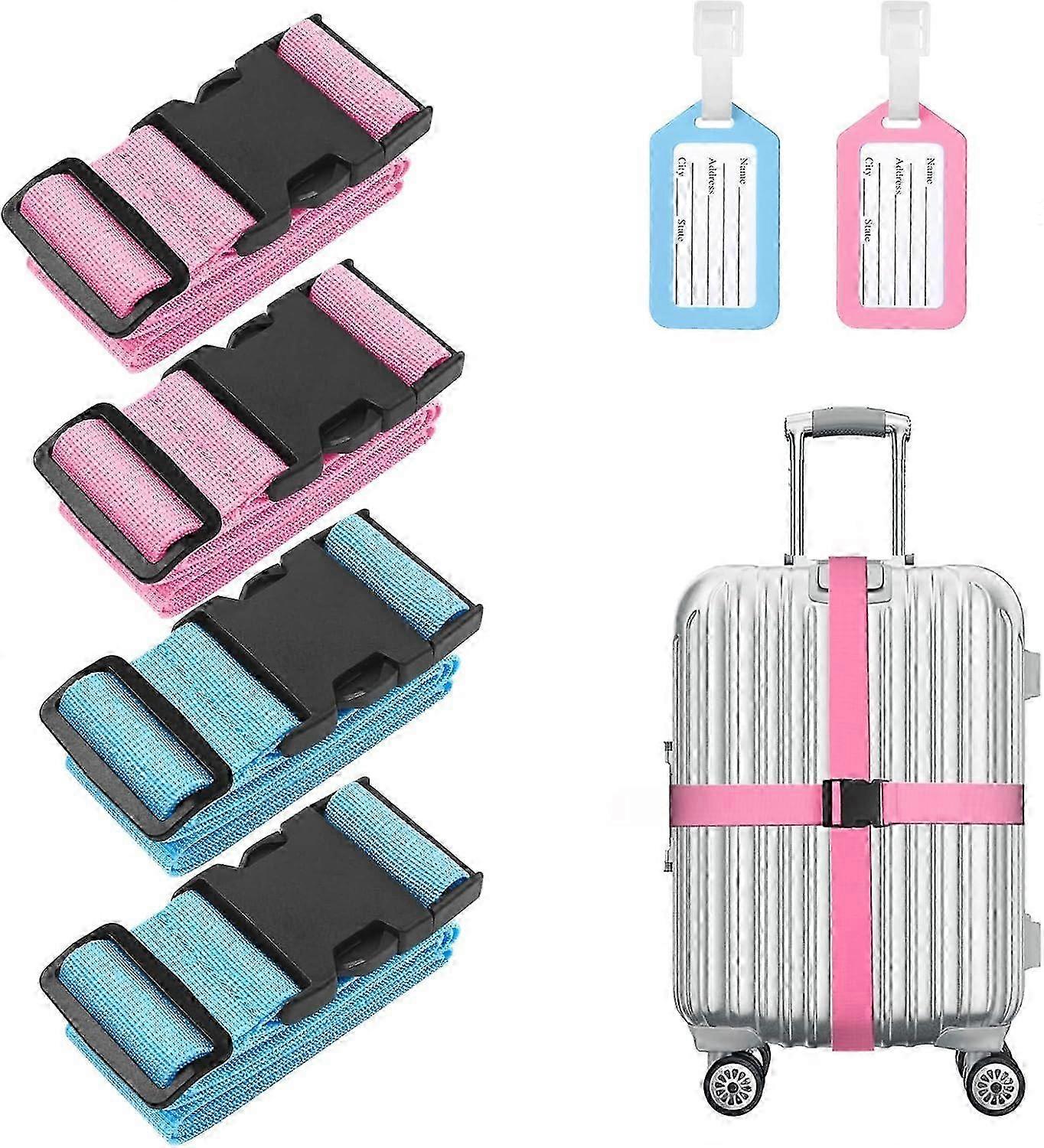 Flintronic 4-Piece Premium Luggage Strap, Suitcase Strap, Adjustable Non-Slip Luggage Band, Long Luggage Straps + 2 Luggage Tags, Secure Travel for