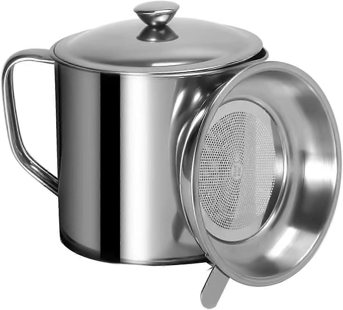 Grease Container with Fine Mesh Strainer, Stainless Steel Oil Storage, 1 Liter with Lid