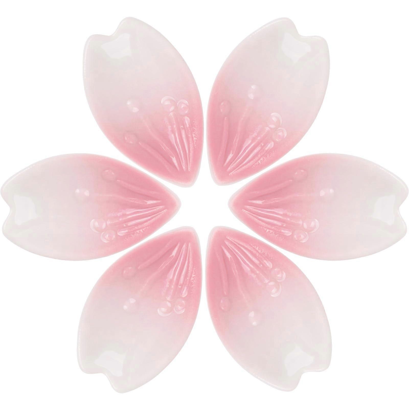 Ceramic Cherry Blossom Chopstick Rest Set, Japanese Style Pink Flower Holders 6 Pieces