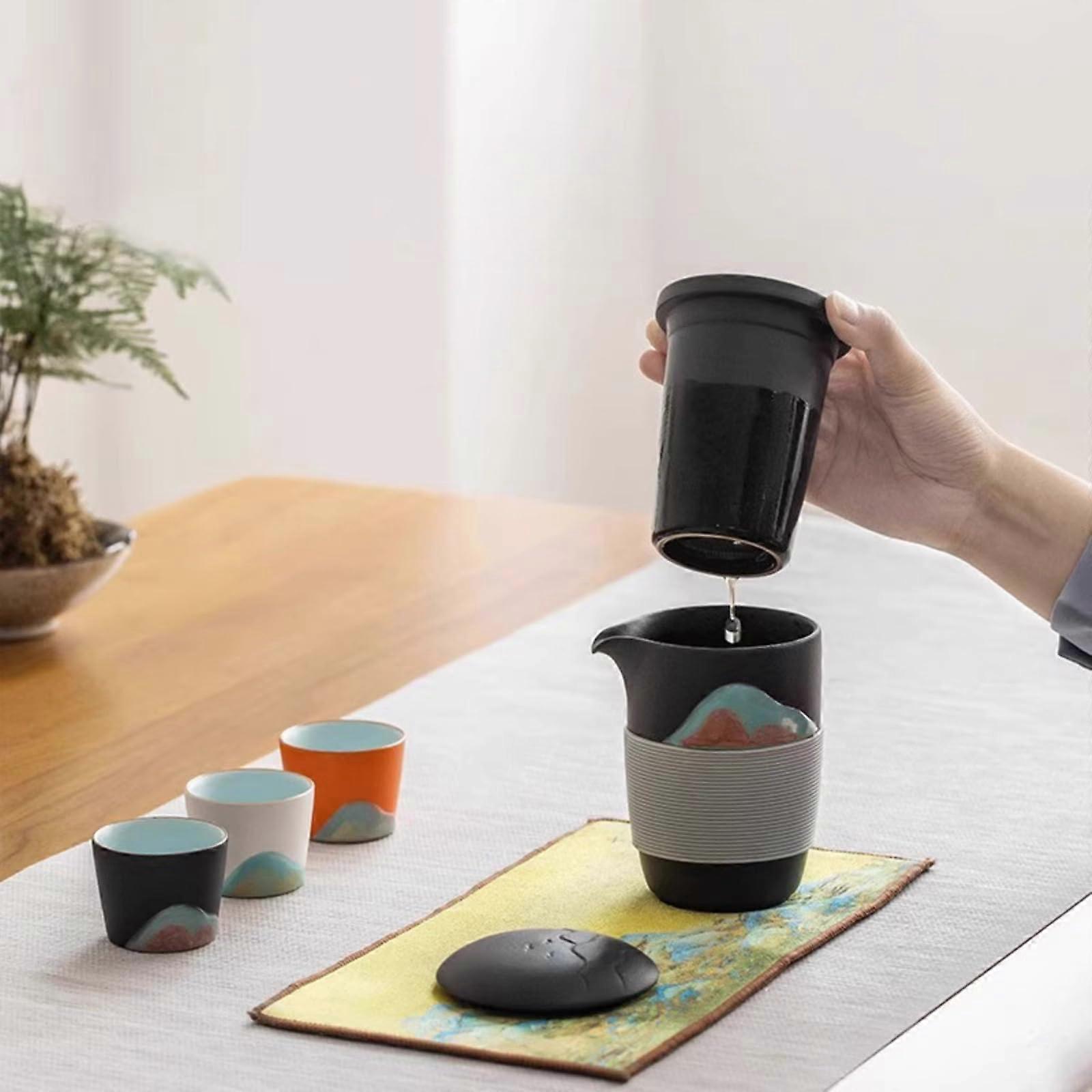 Chinese Ceramic Tea Set 250ml Heat Resistant Kung Fu Style Semi Automatic Brewing 4PC