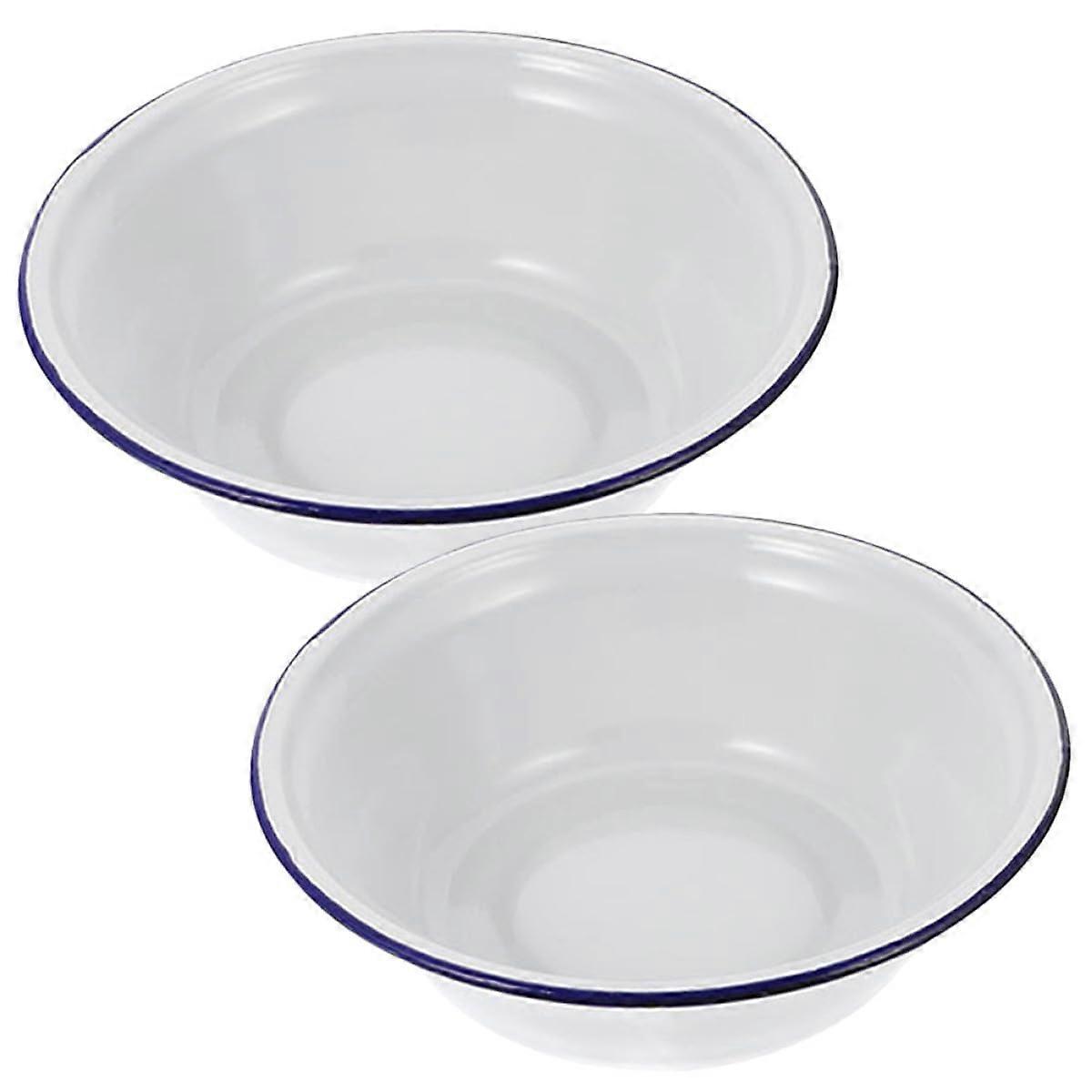 2pcs Vintage Enamel Serving Bowls White Deep Soup Basins Chip Resistant Multipurpose Retro Style