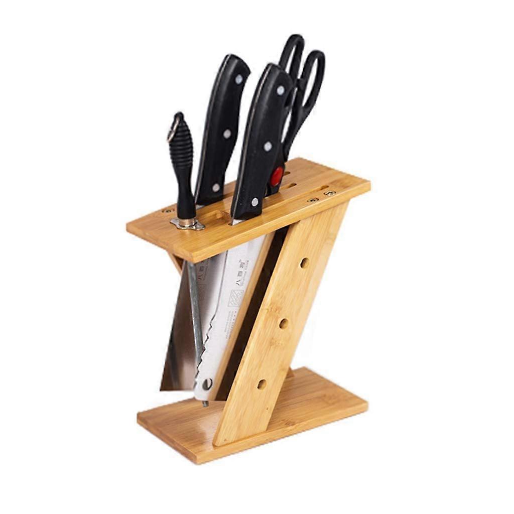 Bamboo Knife Block with 5 Slots, NonSlip Feet and Drainage Hole for Wide Blade Storage
