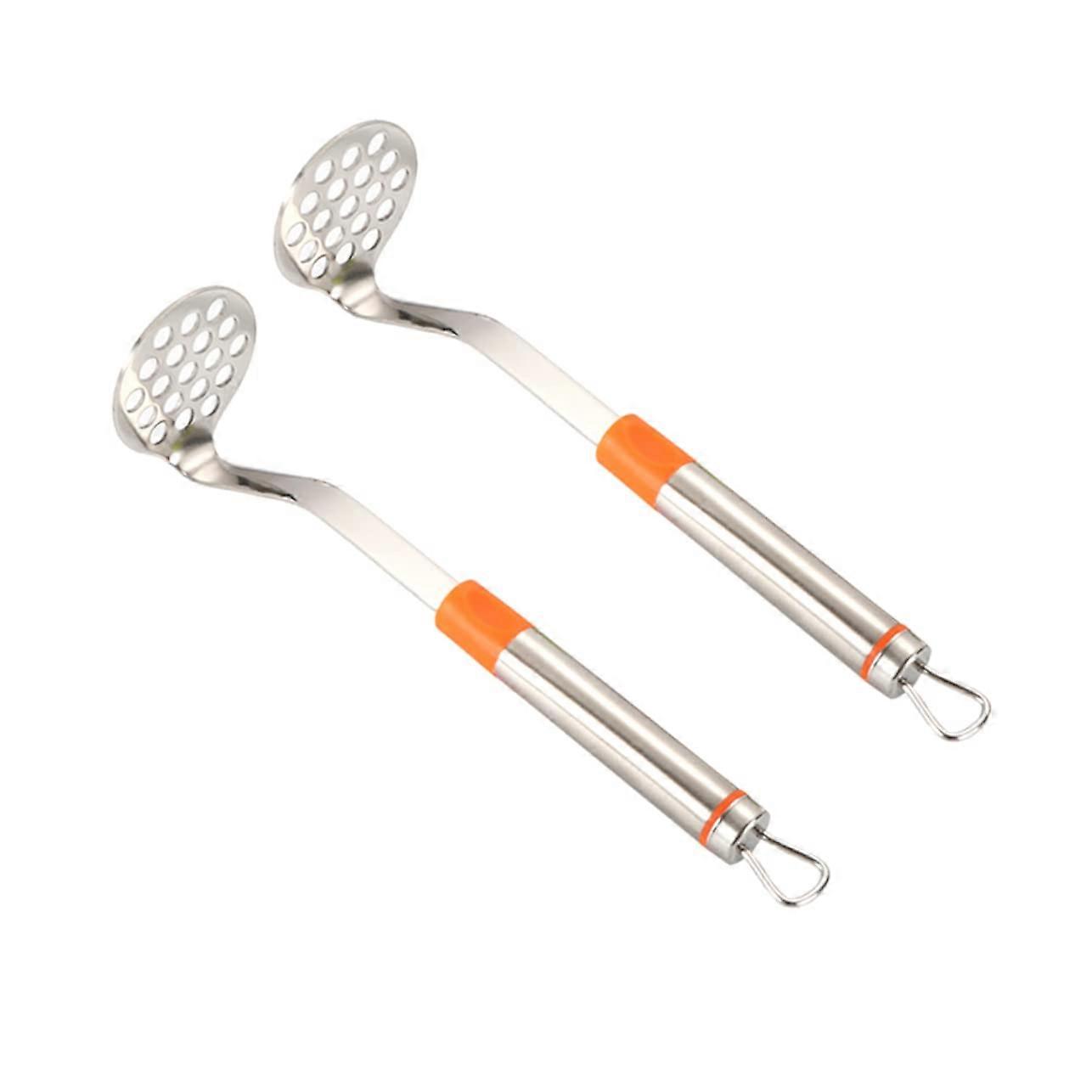 Stainless Steel Potato Masher and Ricer Designed for durability and ease of use, this stainless steel potato masher and ricer delivers smooth, lump results every time. Built to withstand regular kitchen use, it combines practical design with reliable performance. Key Features: quality stainless steel construction ensures strength, corrosion resistance, and longlasting use. Comfortable, heatresistant handle prevents scalding and allows safe handling even with hot foods. Convenient hanging hole for easy storage and quick access in your kitchen. Hollowout design of the mashing plate reduces effort, making potato pressing faster and more efficient. Benefits: Smoothly mashes potatoes, vegetables, and other soft foods without excessive manual force. Spacesaving storage keeps your kitchen organized. Heatresistant grip lets you work directly with freshly boiled ingredients without discomfort. Efficient pressing design saves time during meal preparation. Practical Applications: 1. Preparing light, fluffy mashed potatoes for family dinners or gatherings. 2. Pressing cooked vegetables such as carrots or sweet potatoes for baby food or healthy purées. 3. Making smooth gnocchi dough by ricing cooked potatoes quickly and evenly. Compatibility and Size: Suitable for use with various soft vegetables and cooked root crops. Compact size makes it easy to store in drawers or hang on kitchen racks. With strong stainless steel construction, ergonomic handling, and efficient design, this potato masher and ricer is a dependable tool for achieving consistently smooth results in your cooking.