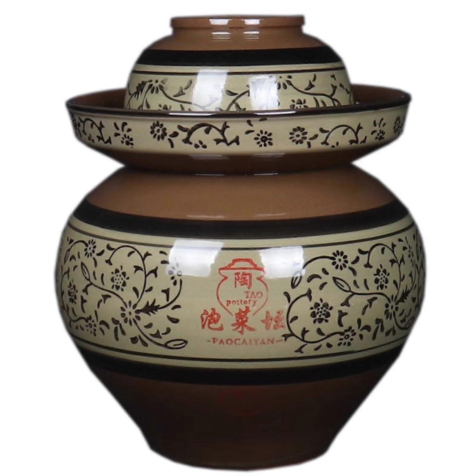 Ceramic Fermentation Crock 4L with Lid, Stoneware Pickling Jar for Vegetables and Sauerkraut