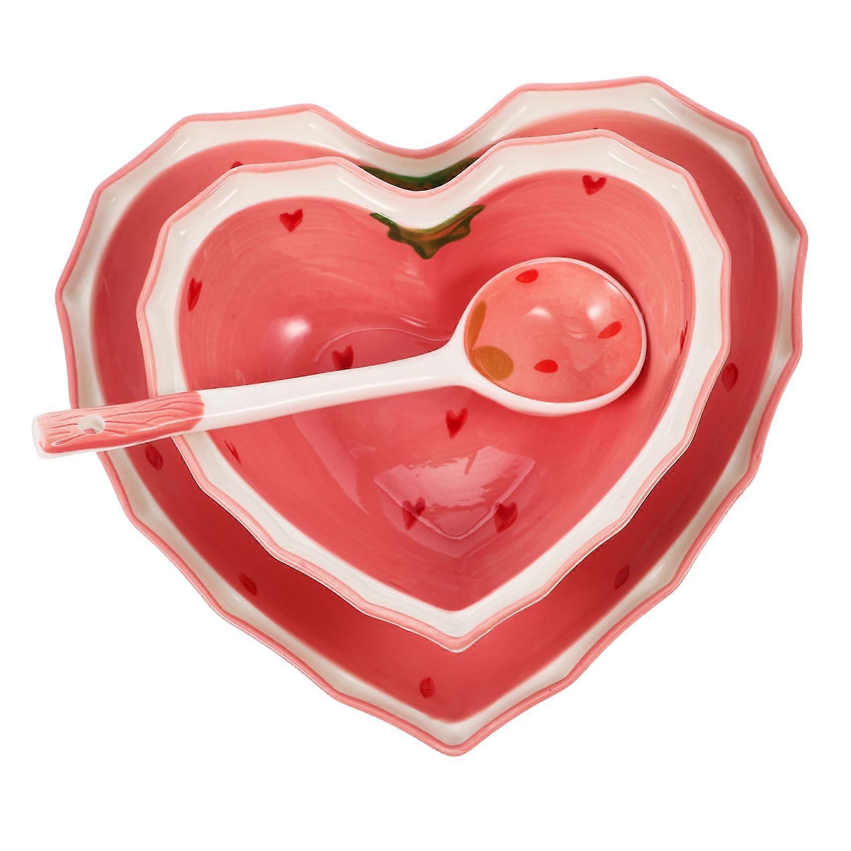 Heart Shaped Salad Serving Bowl Set with Spoon and Plate, Lightweight Stackable Tableware for Indoor Outdoor Snacks and Desserts