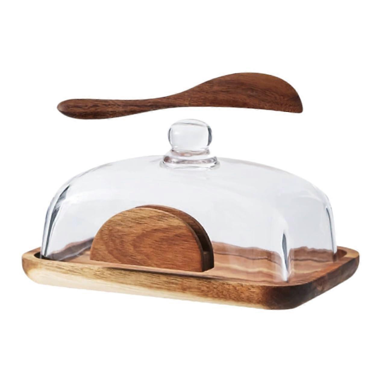 Rustic Wooden Bread Box with Glass Lid Butter and Cheese Storage Farmhouse Kitchen Organizer