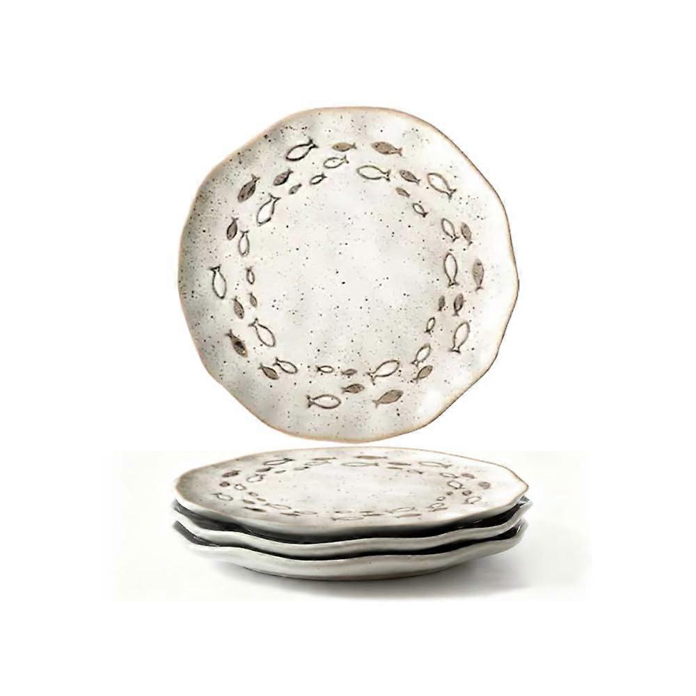 Ceramic Dinner Plates Set of 4, Japanese Porcelain Fish Pattern, 9 Inch Microwave Dishwasher Safe