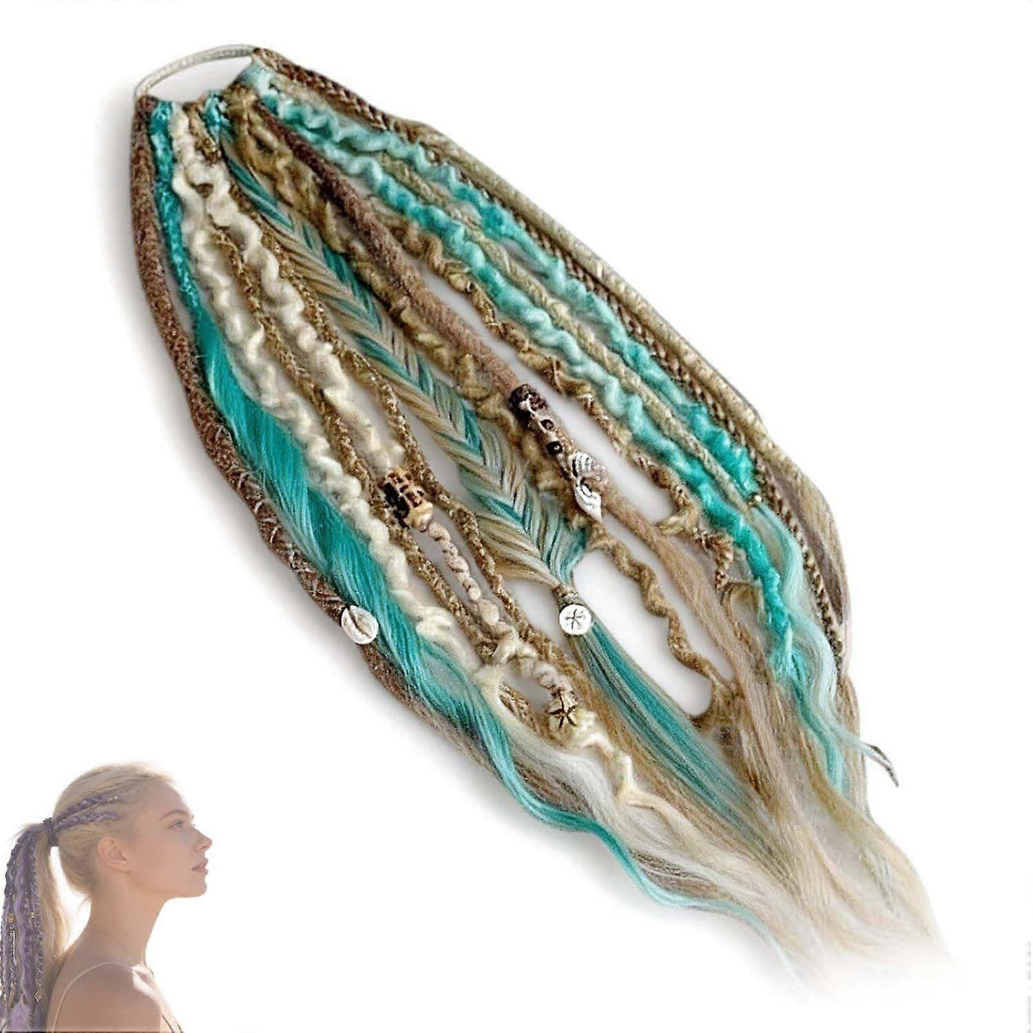 Elastic Dread Ponytail Salty-Soul, 22" Boho Braided Ponytail Extension with Hair Tie,Travel & Casual Styles, Elastic Boho Dreadlock Hair with Beads &
