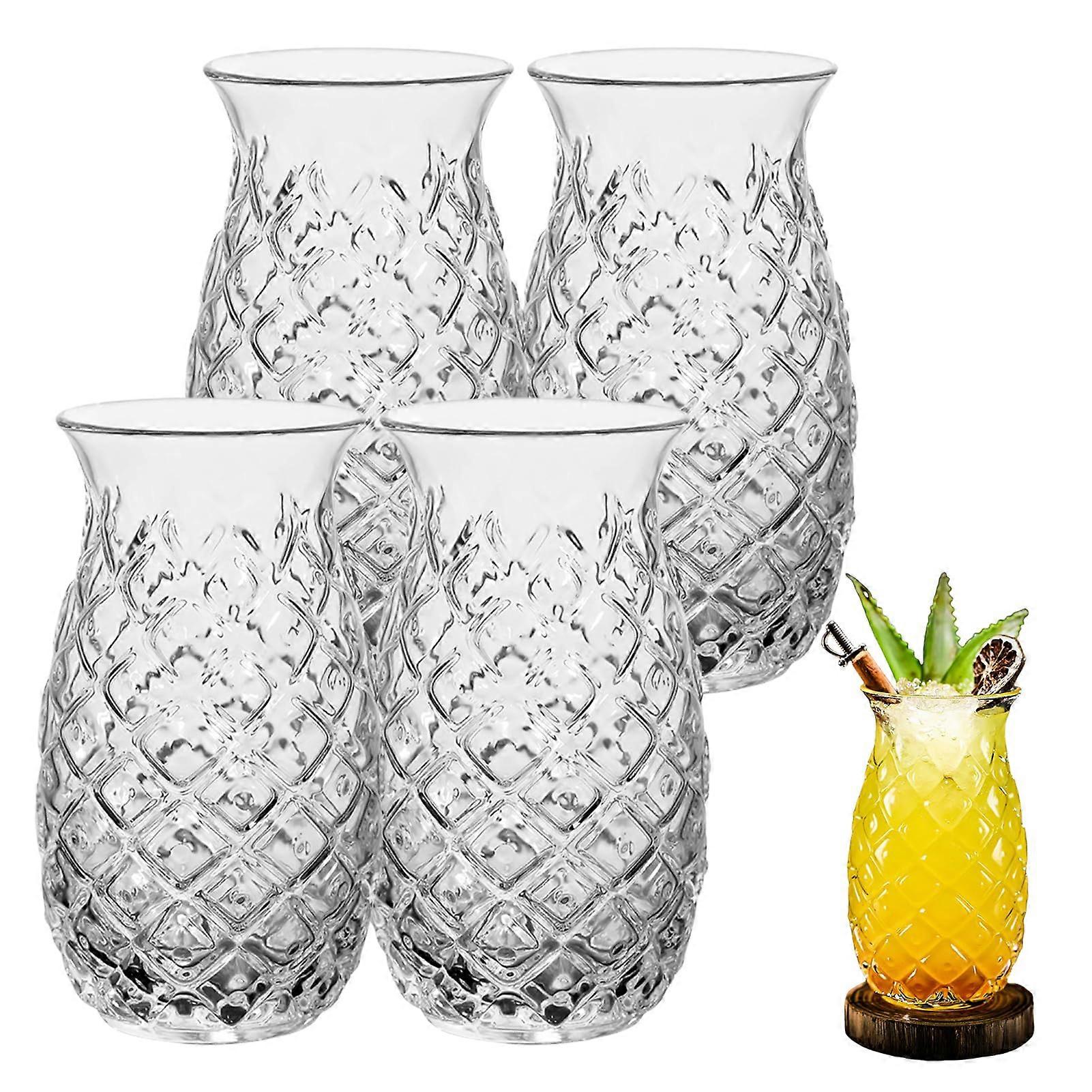 16 oz Pineapple Tiki Glasses Set with Elegant Pattern, Tropical Cocktail Glassware for Parties