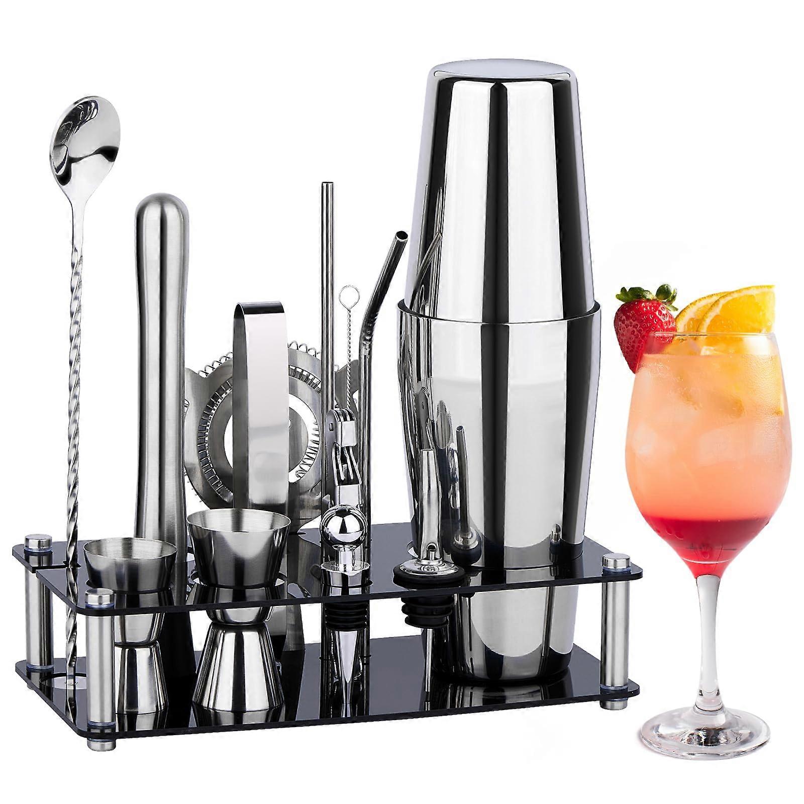 15Piece Cocktail Shaker Set with Stylish Acrylic Stand, Leakproof Stainless Steel Bartender Kit for Home Bar Drink Mixing