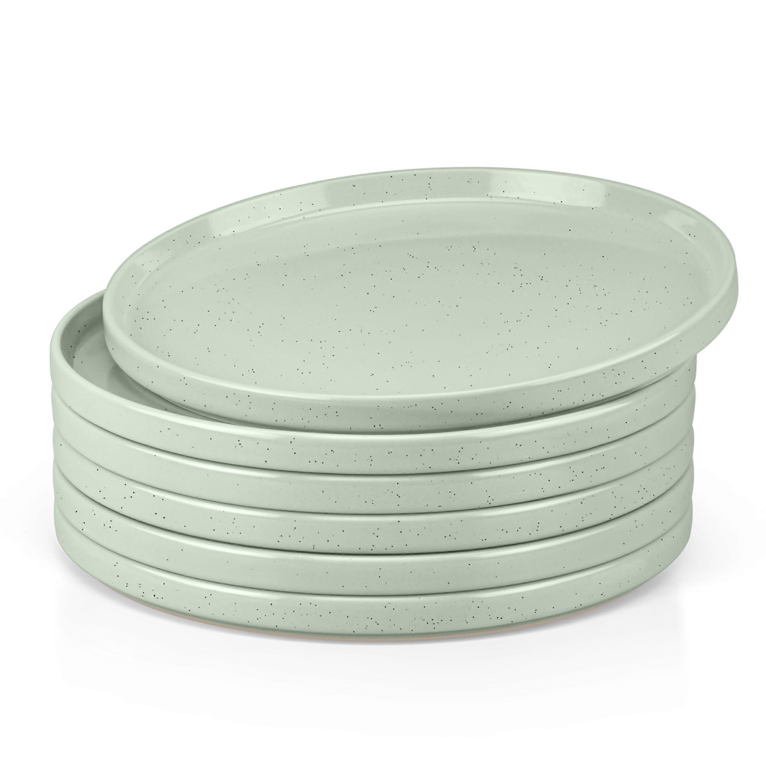 Stoneware Dinner Plates Set of 6, 10.5 Inch Speckled Ceramic, Microwave and Dishwasher Safe