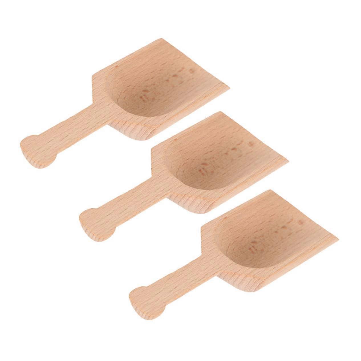 Wooden Measuring Spoons Set 3pcs Beech Tea Scoops with Ergonomic Grip for Kitchen and Bath Salt