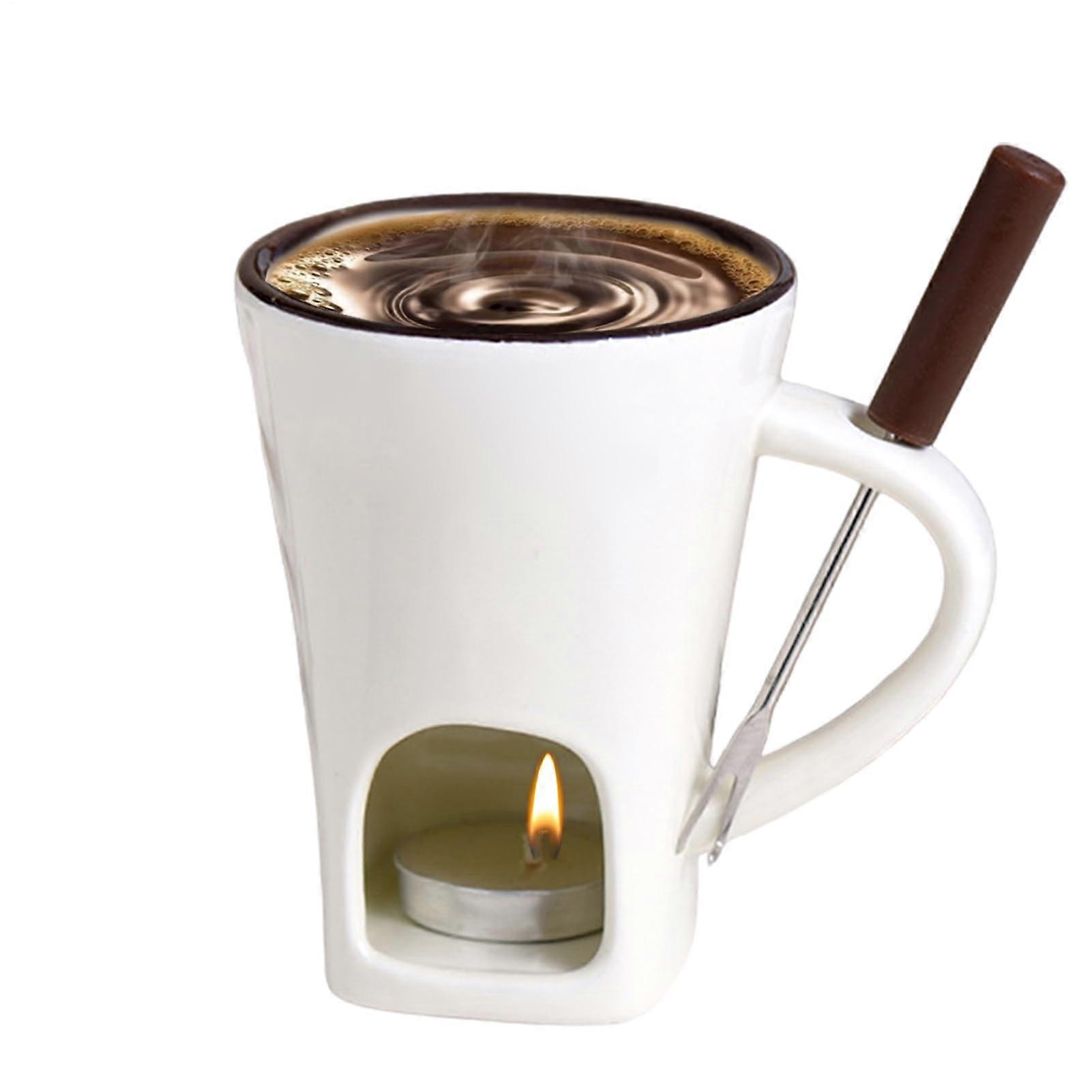 Chocolate Fondue Set with Forks and Tealight, 400ml Ceramic Mug for Cheese, Snacks and Desserts