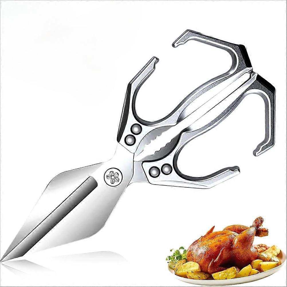 Heavy Duty Stainless Steel Kitchen Scissors with Sharp Blades for Poultry Meat and Food Silver