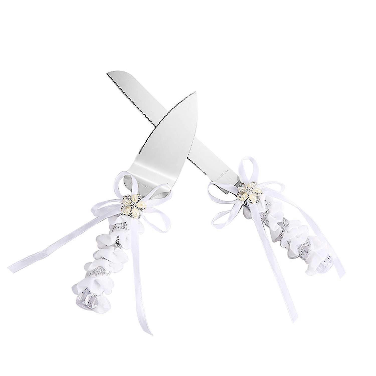 Elegant Wedding Cake Knife and Server Set with Pearl Flower Handle, Stainless Steel GiftReady