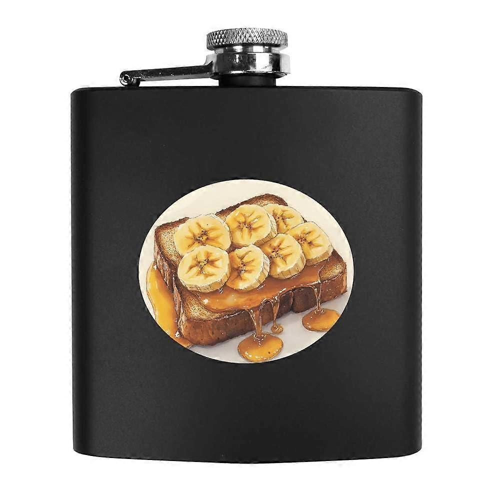 Matte Black Hip Flask 6oz Stainless Steel with Banana and Honey Design Pocket Size