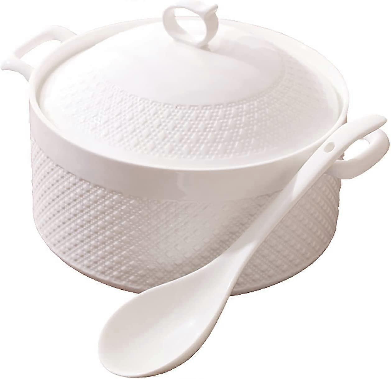Large Ceramic Soup Bowls with Handles 3600ml White Soup Tureen with Lid and Ladle for Serving