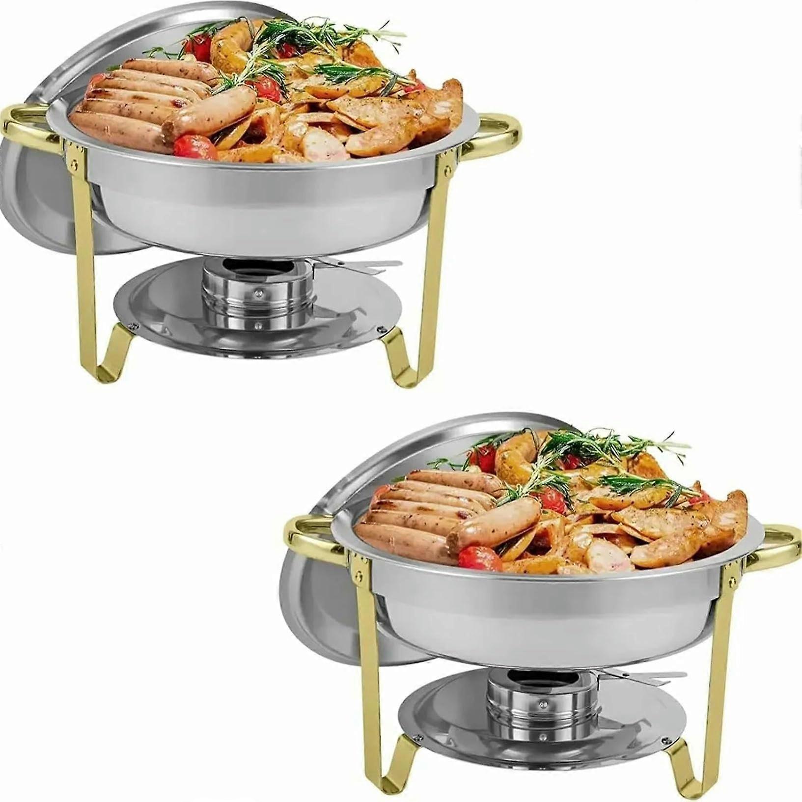 Chafing Dishes for Buffet 2 Pack Round Stainless Steel Foldable Warmers 5QT for Wedding Catering