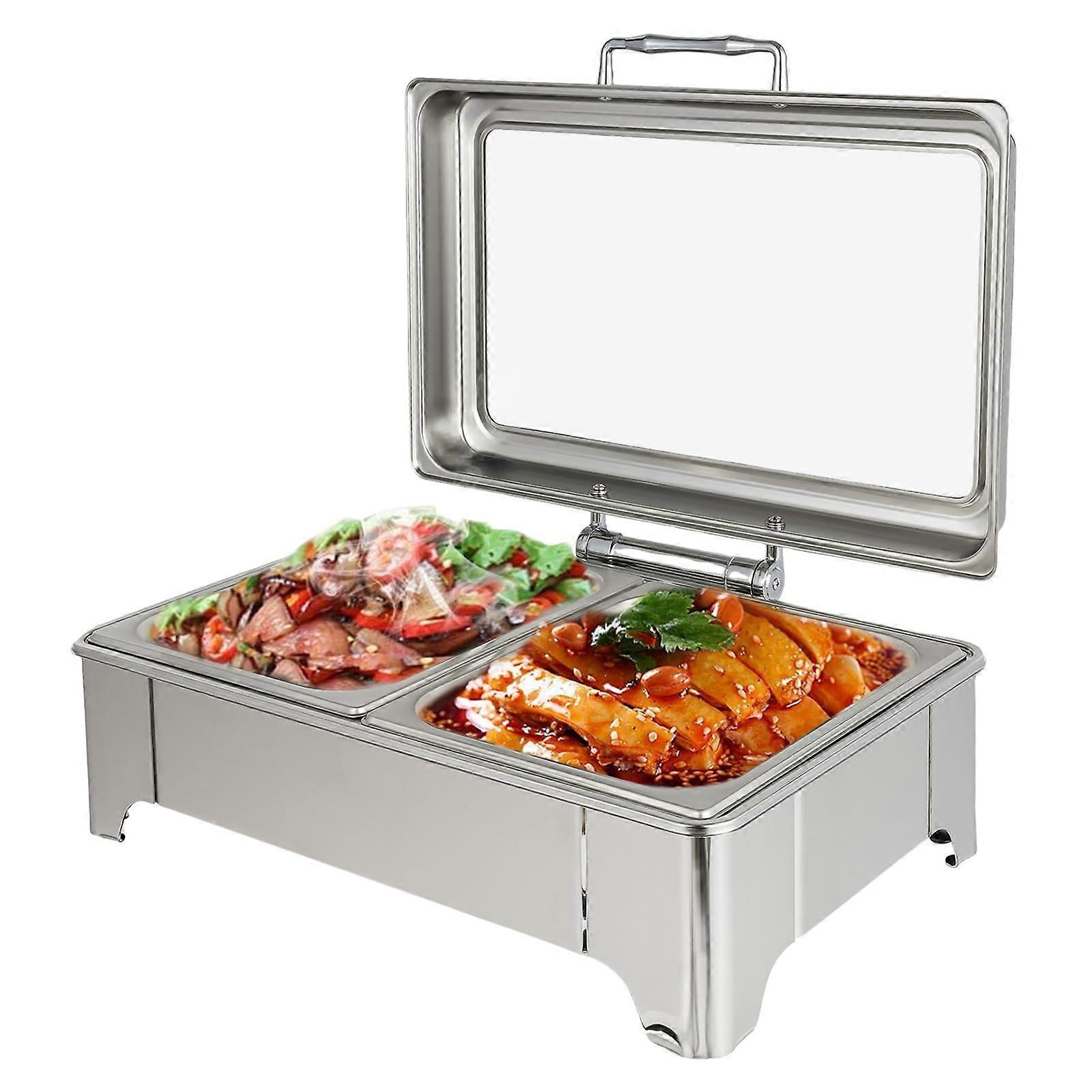 9.5Qt Electric Chafing Dish with Temperature Control, Stainless Steel Buffet Warmer with Glass Lid and Dual Pan Design for Catering, Weddings, Parties