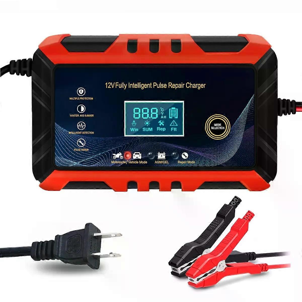 12V Car Battery Charger Intelligent Pulse Repair LCD Display for Auto Motorcycle Charging Maintenance Desulfator