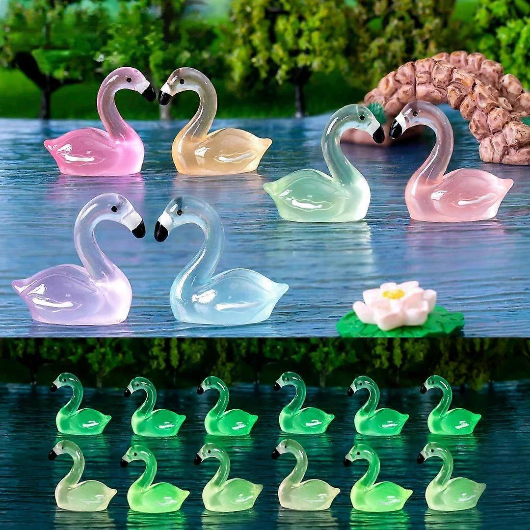 20pcs Luminous Flamingo Mini Figurines Micro Landscape Decoration Fairy Garden Miniatures Home Decor Accessories