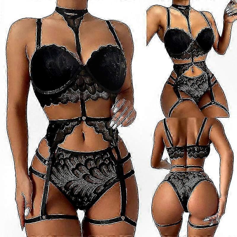 Lace Trimmed Garter Set for Women with Strappy Design