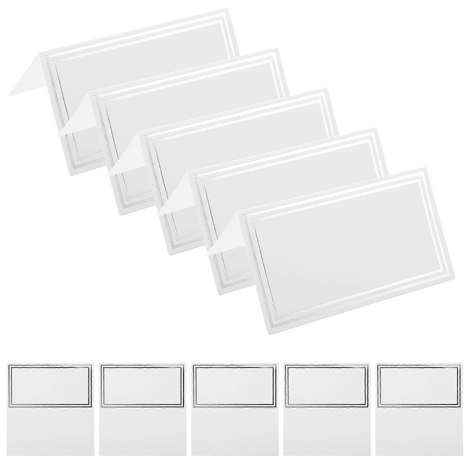 These place cards are made of thick, excellent paper that is easy to write on and dries quickly. The elegant and simple texture is complemented by silver edges that add character and glamour. The three-dimensional design allows them to be placed on tables to guide guests at weddings or dinner parties to their seats. Features - ColorSilver -Material:Paper - Size: 9.00X5.00X5.00cm/3.54X1.97X1.97in - Sufficient quantity for meeting your different needs, you can arrange them according to your actual requirements. - These name cards or place cards are easy to stand on your table, beautifully displaying the information and allowing guests to notice it. - A must-have party accessory for wedding party, decorate your table for creating more romantic atmosphere. - Well display information to guide your guests, bring more conveniences for your wedding party. - These tented place cards can stably stand on table, bring an elegant accent to your table setting, easy and convenient to use. Package list: place card