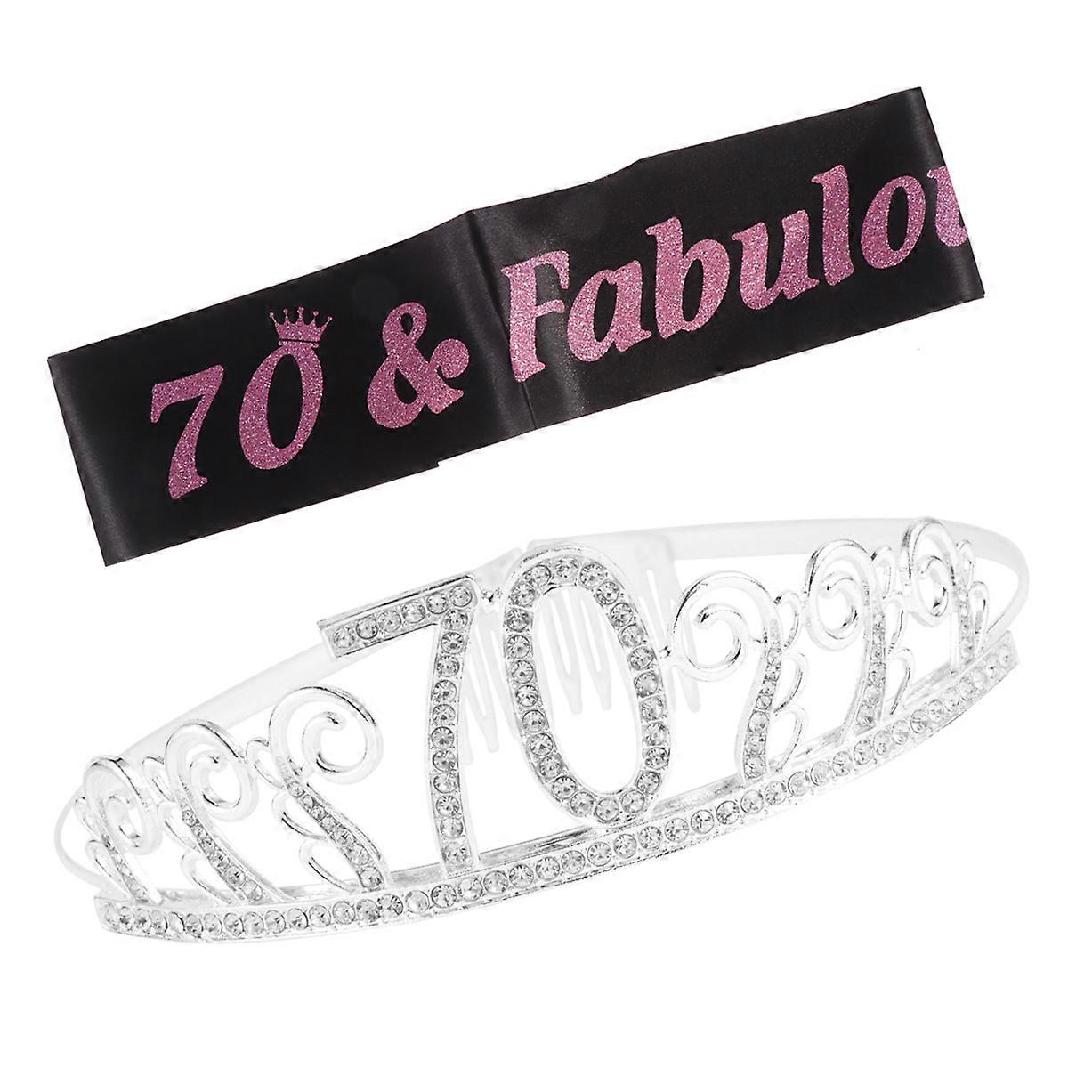 This item is a set of 70th birthday tiara and sash. The sash is made of with with nice silky feel. Make the your birthday party more attractive and interesting, giving you a unforgattable birthday with it. Perfect for birthday themed party decor. Features - ColorAssorted Color - Material: Cloth and alloy. - Package Size: About 25 x 18 x 5cm. - Made of material, for long term use. - Sash printed with "70 & Fabulous" with bright color. - One size fits most people. - Perfect for celebrating every woman’s 70th birthday. - Also can be a good photo prop to take some meaningful pictures. Package list: 1 x birthday sash 1 x tiara